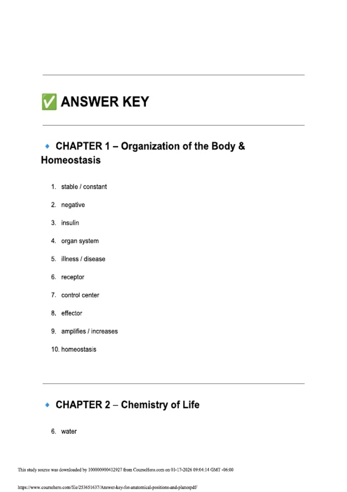 Answer key for anatomical positions and planes| Exam Solution | updated