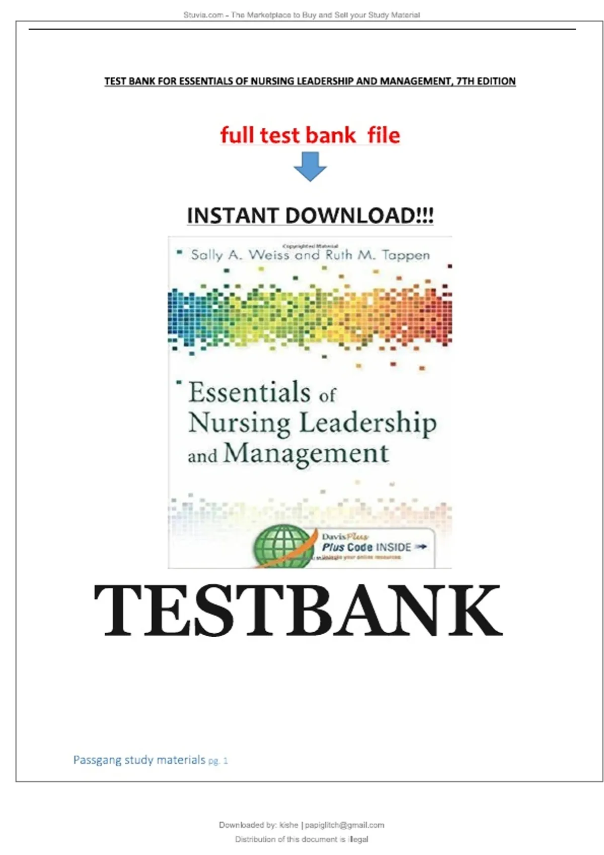 TEST BANK FOR ESSENTIALS OF NURSING LEADERSHIP AND MANAGEMENT, 7TH EDITION