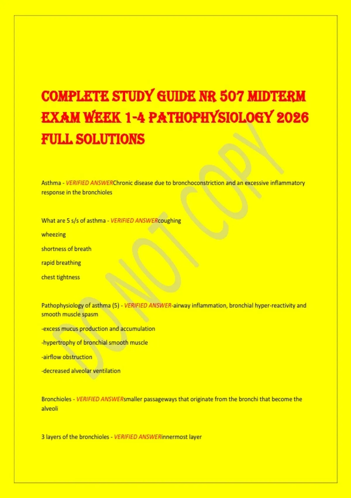 COMPLETE STUDY GUIDE NR 507 MIDTERM EXAM WEEK 1-4 PATHOPHYSIOLOGY 2026 FULL SOLUTIONS