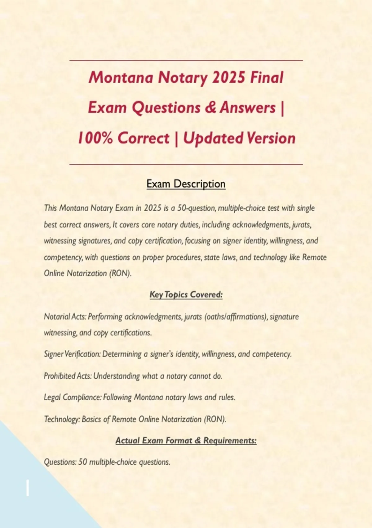 This Montana Notary Exam in 2025 is a 50-question, multiple-choice test with single