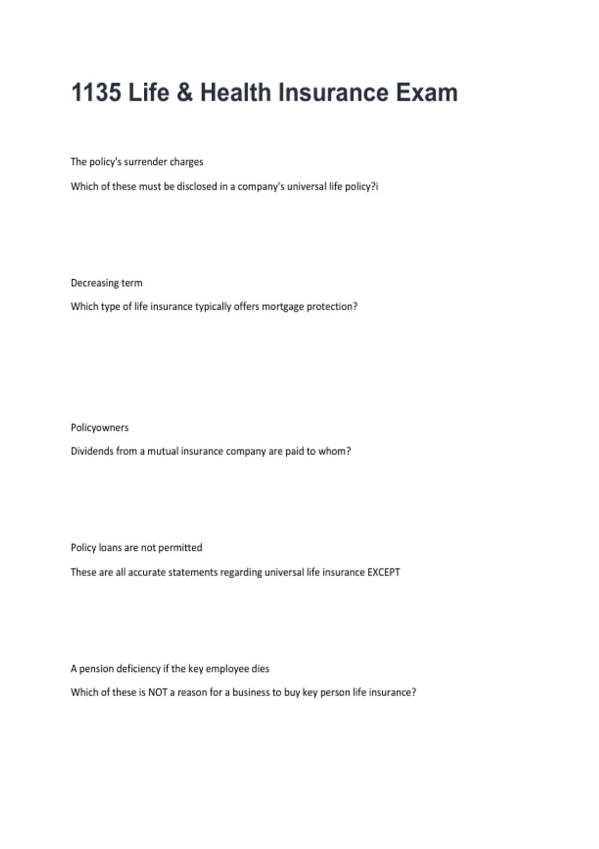 1135 Life & Health Insurance Exam | Converted Verified Questions & Answers