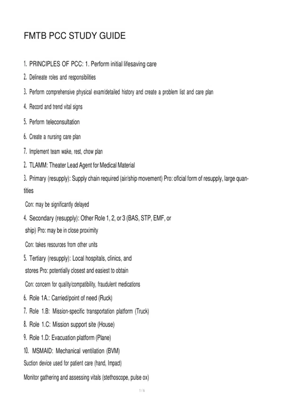 1. PRINCIPLES OF PCC: 1. Perform initial lifesaving care