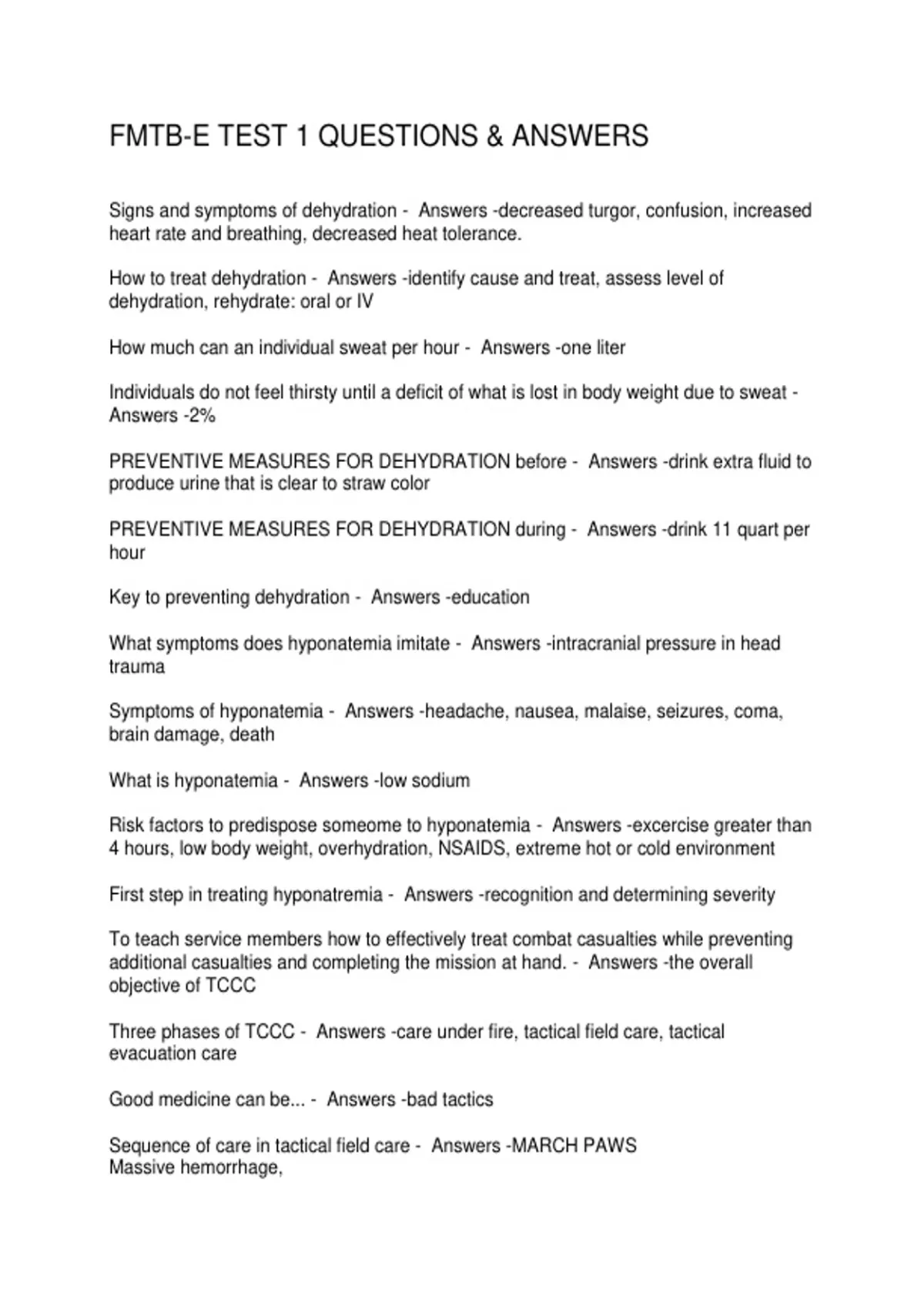 PREVENTIVE MEASURES FOR DEHYDRATION during - Answers -drink 11 quart per