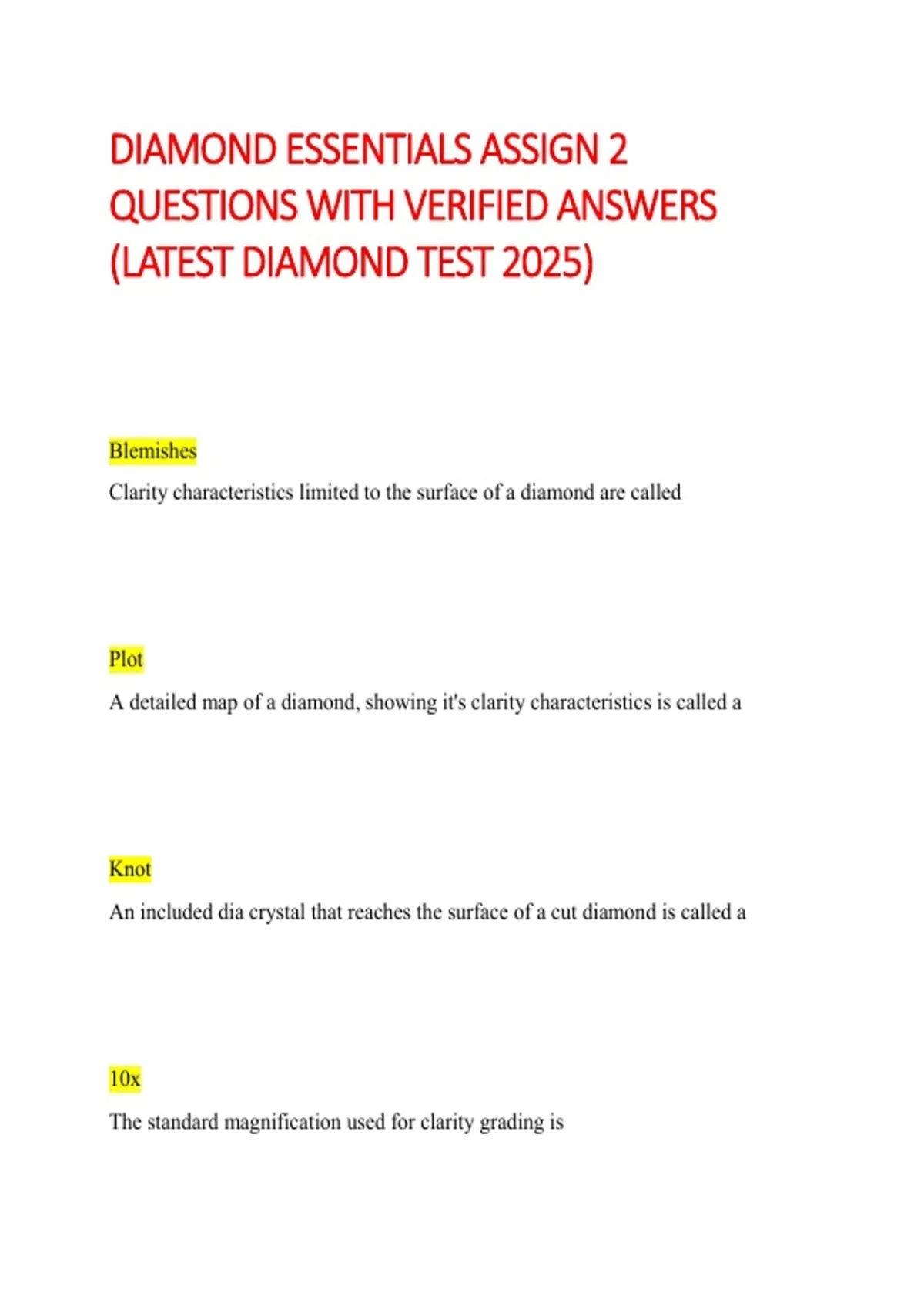 Diamond Essentials Assignment 2 | Questions with Verified Answers