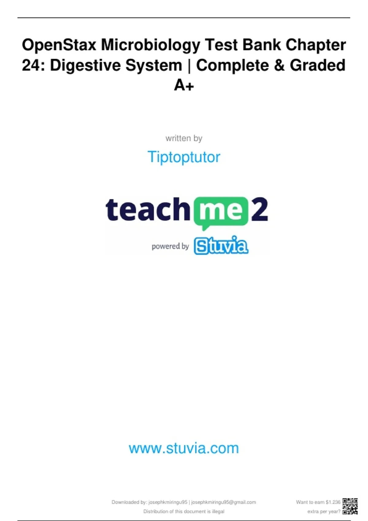 TEST BANK FOR OpenStax Microbiology Chapter 24: Digestive System | Complete & Graded A+
