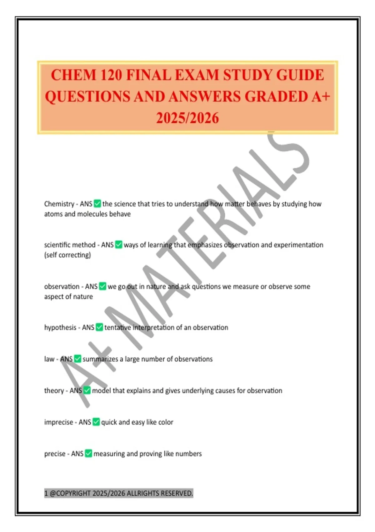 CHEM 120 FINAL EXAM STUDY GUIDE QUESTIONS AND ANSWERS GRADED A+ 2025/2026