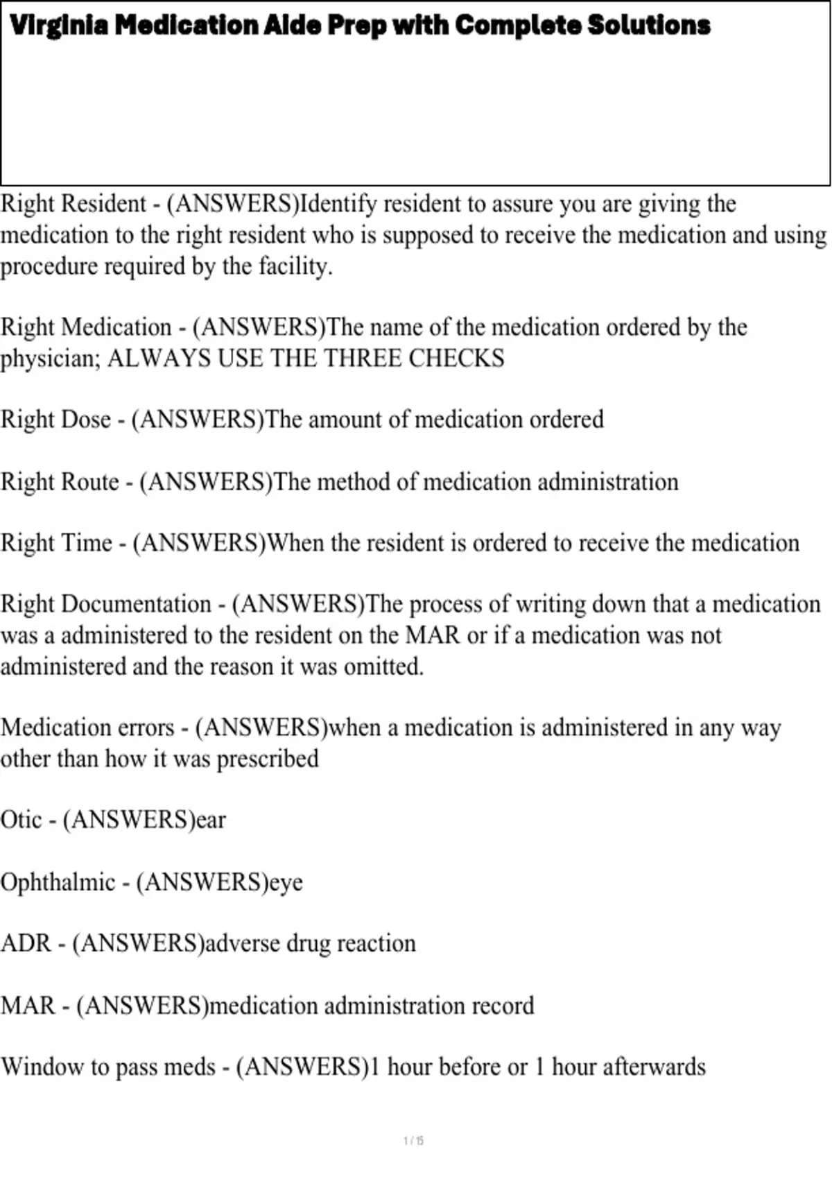 Virginia Medication Aide Prep with Complete Solutions