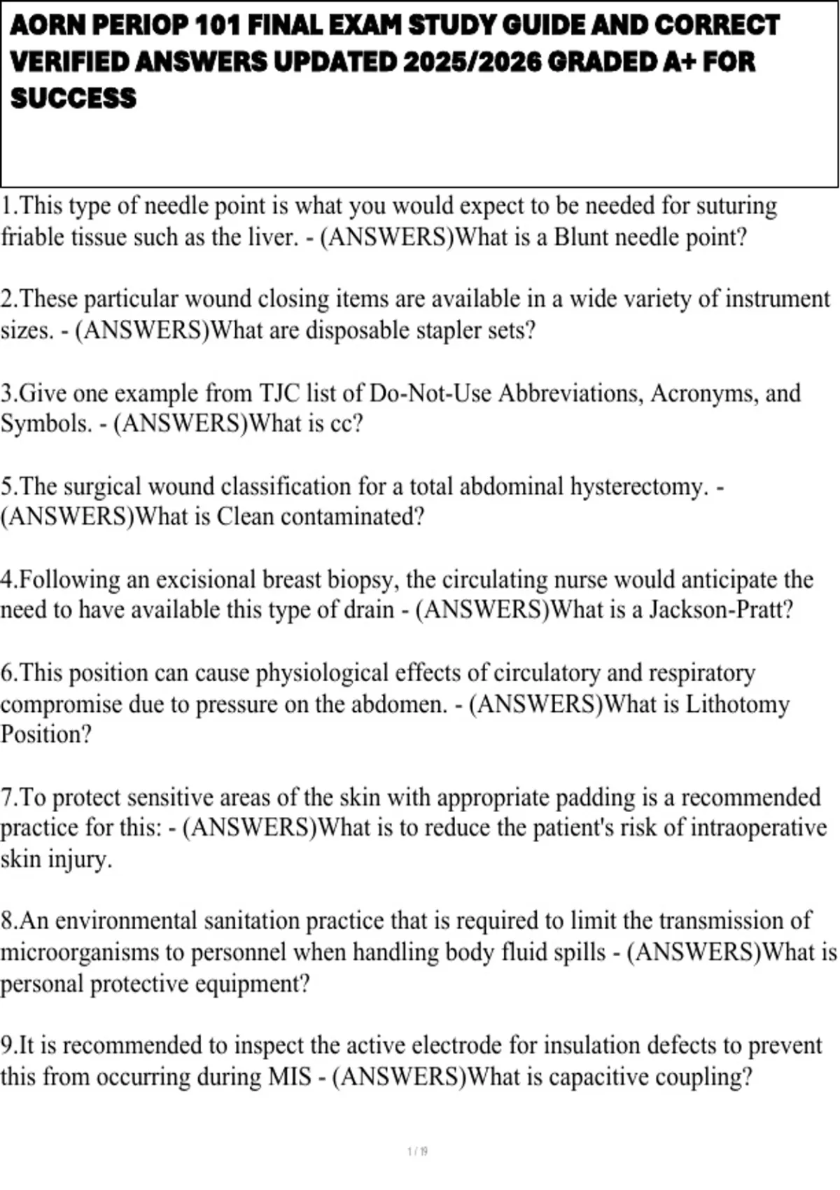 , AORN PERIOP 101 FINAL EXAM STUDY GUIDE AND CORRECT