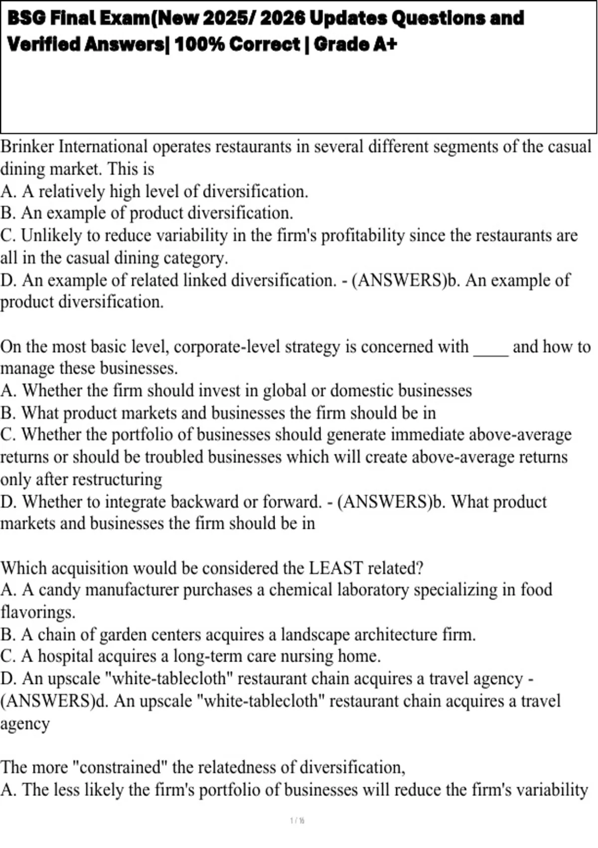 BSG Final Exam(New 2025/ 2026 Updates Questions and