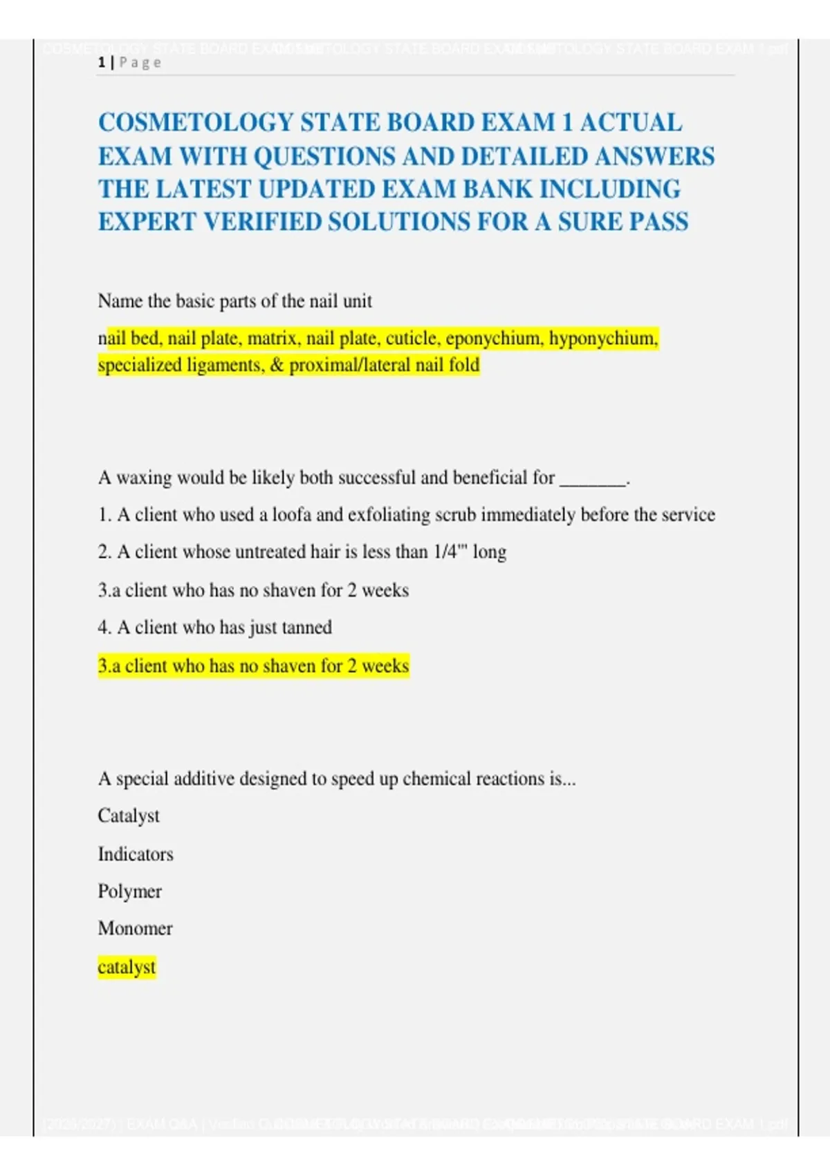 COSMETOLOGY STATE BOARD EXAM 1 ACTUAL