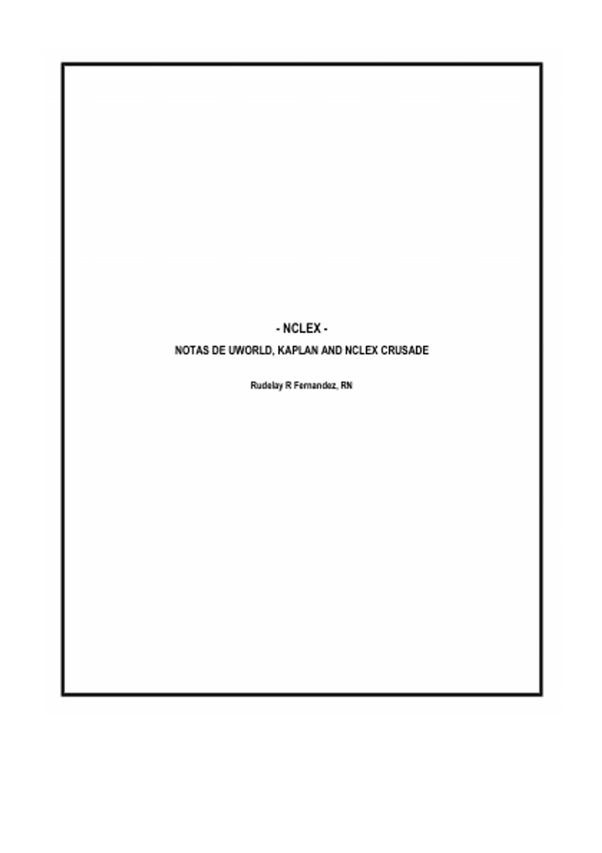 NOTAS DE UWORLD, KAPLAN AND NCLEX CRUSADE