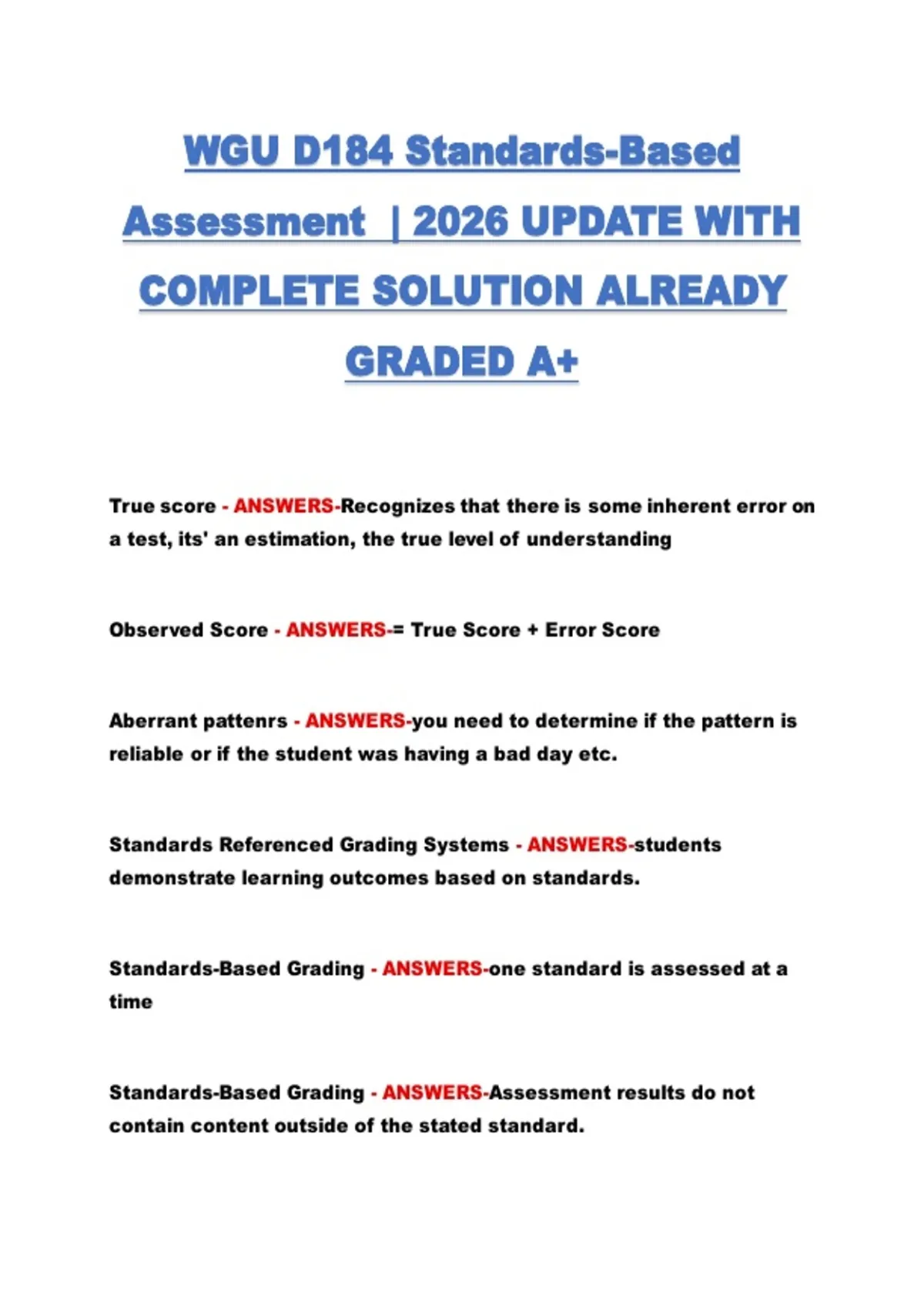 WGU D184 Standards-Based Assessment  | 2026 UPDATE WITH COMPLETE SOLUTION ALREADY GRADED A+