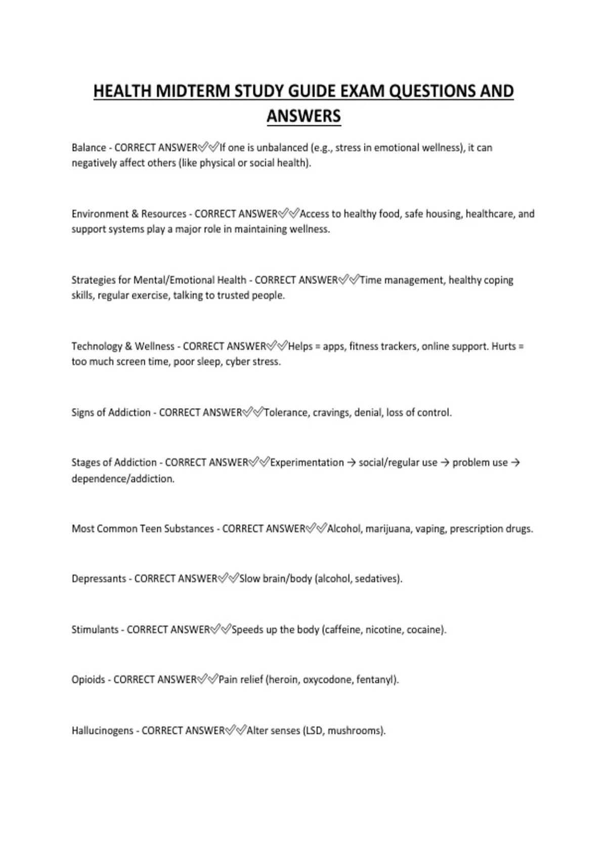 HEALTH MIDTERM STUDY GUIDE EXAM QUESTIONS AND ANSWERS