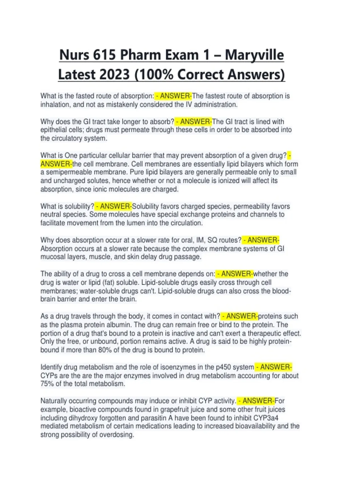 Nurs 615 Pharm Exam 1 – Maryville Latest 2023 (100- Correct Answers)