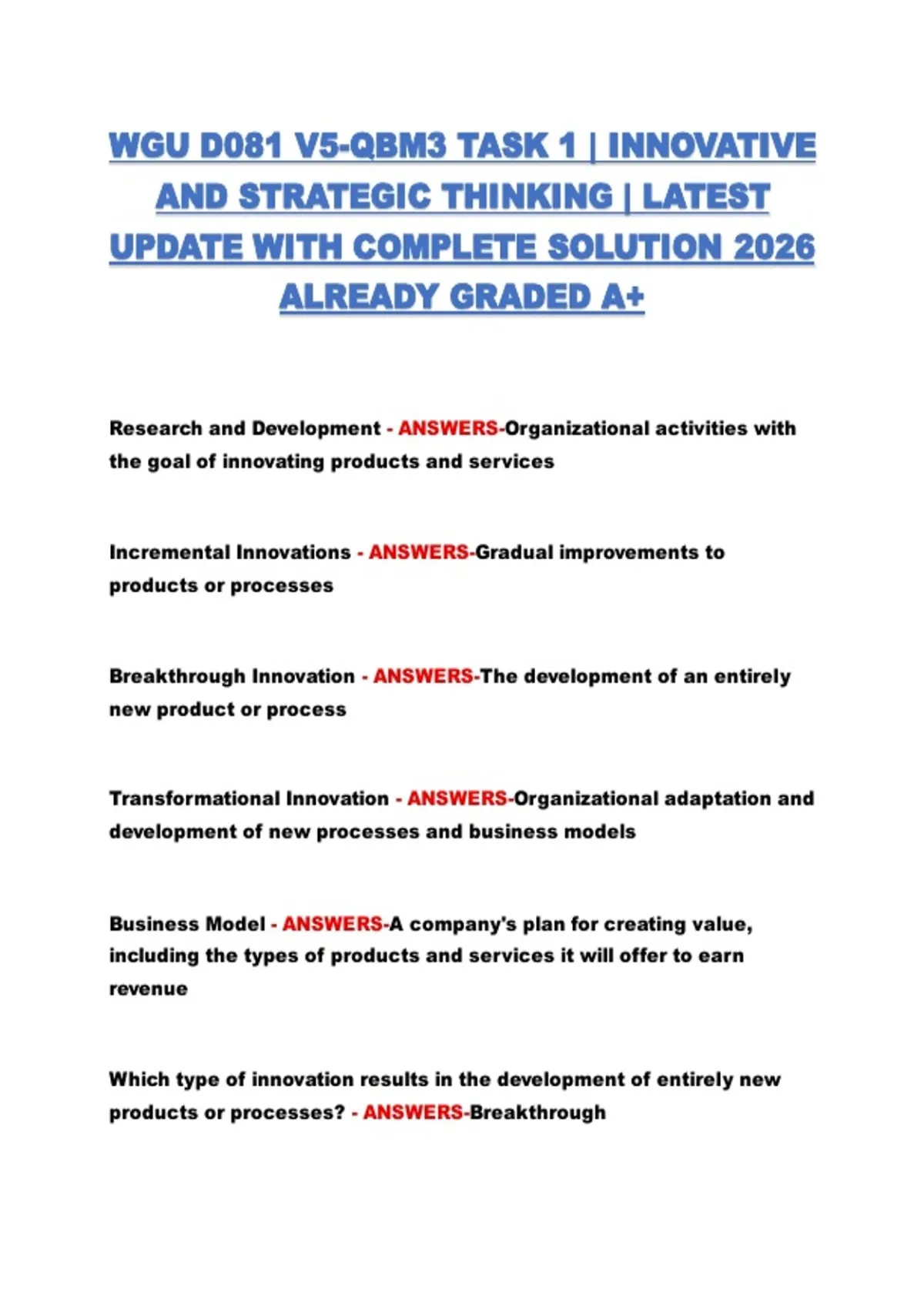 WGU D081 V5-QBM3 Task 1 | Innovative & Strategic Thinking | 2026 Update – Complete Solution (A+)