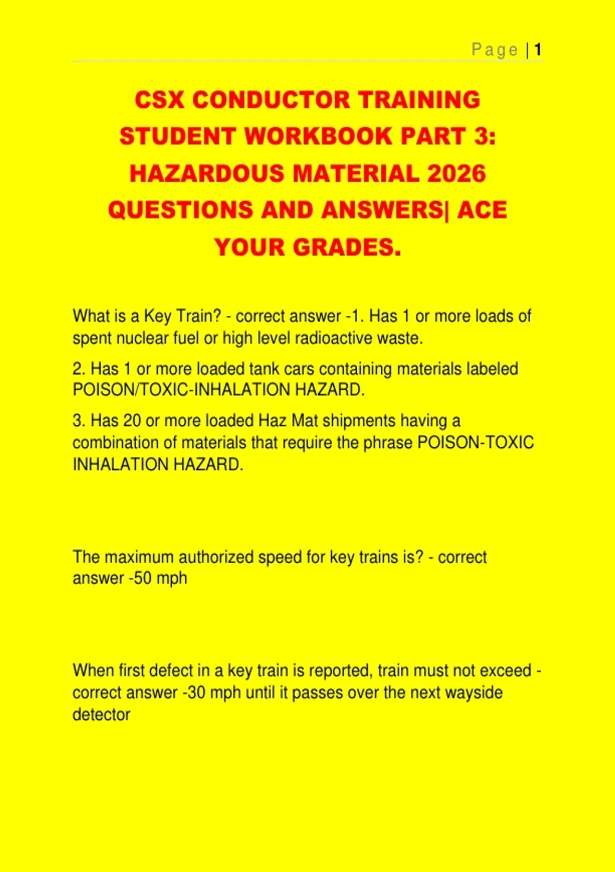 What is a Key Train? - correct answer -1. Has 1 or more loads of