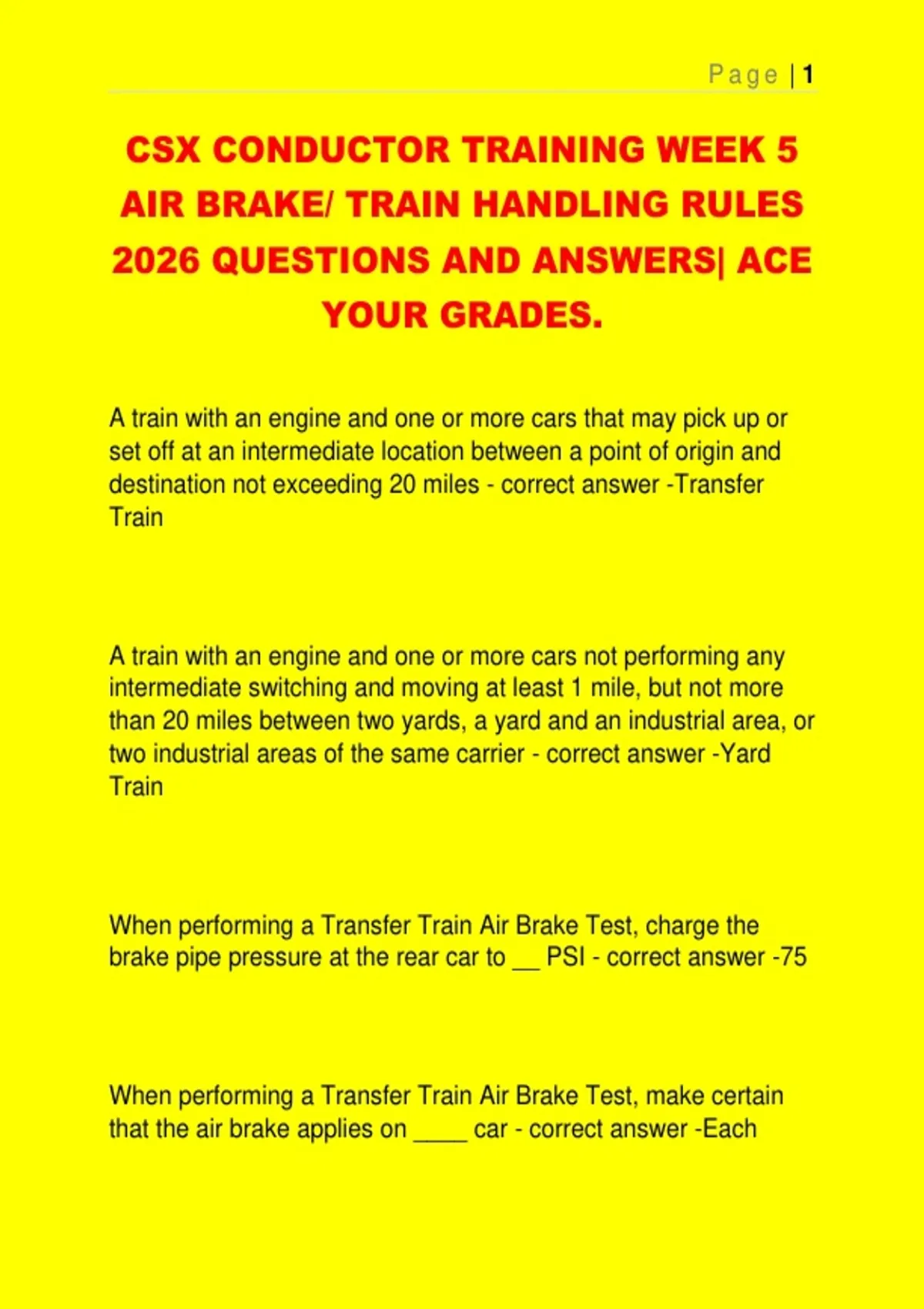 CSX CONDUCTOR TRAINING WEEK 5 AIR BRAKE/ TRAIN HANDLING RULES 2026 QUESTIONS AND ANSWERS| ACE YOUR GRADES.