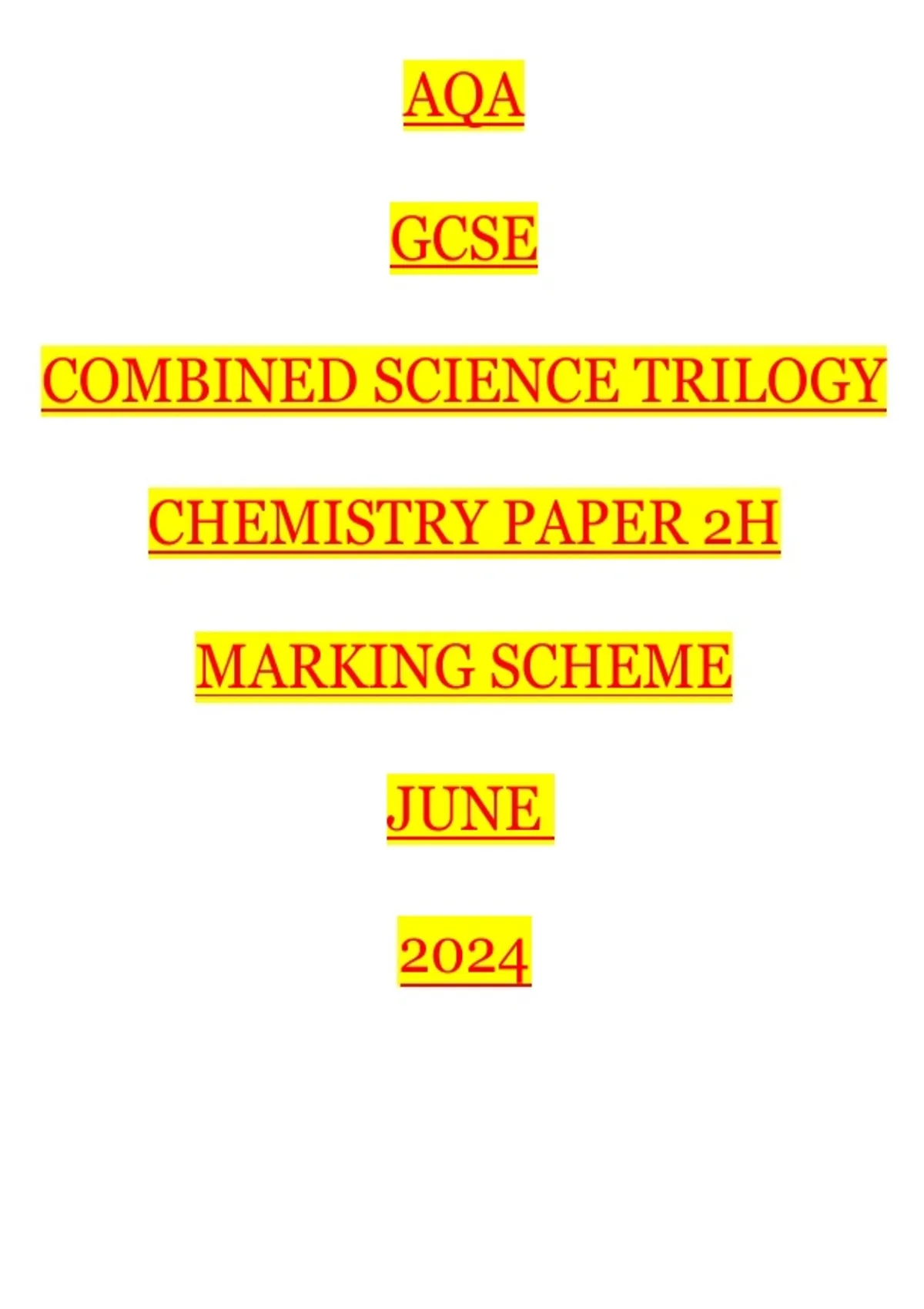 , MARK SCHEME – GCSE COMBINED SCIENCE: TRILOGY – 8464/C/2H – JUNE 2024