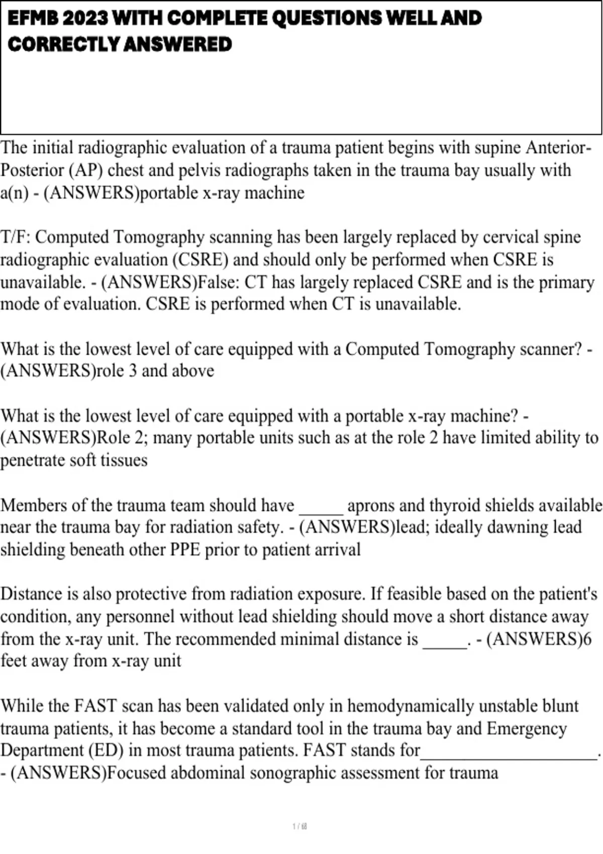 EFMB 2023 WITH COMPLETE QUESTIONS WELL AND CORRECTLY ANSWERED