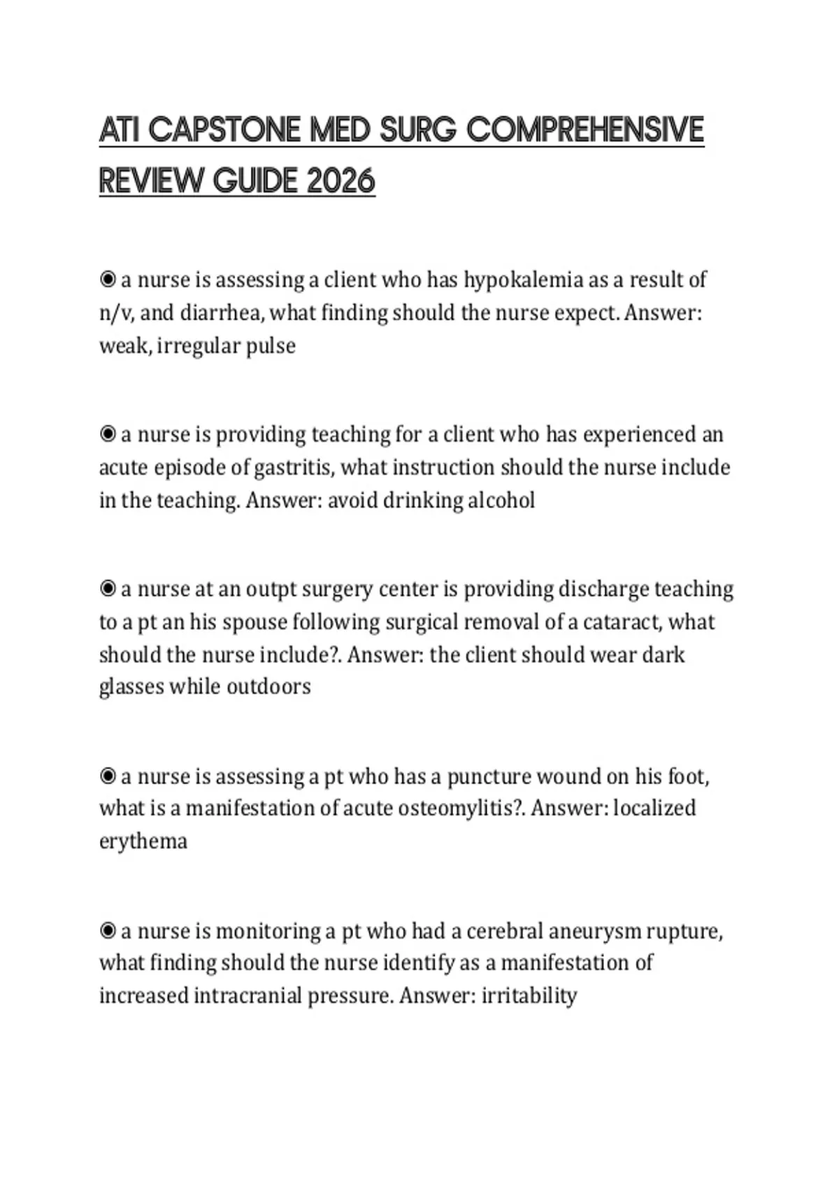 ATI CAPSTONE MED SURG COMPREHENSIVE REVIEW GUIDE 2026