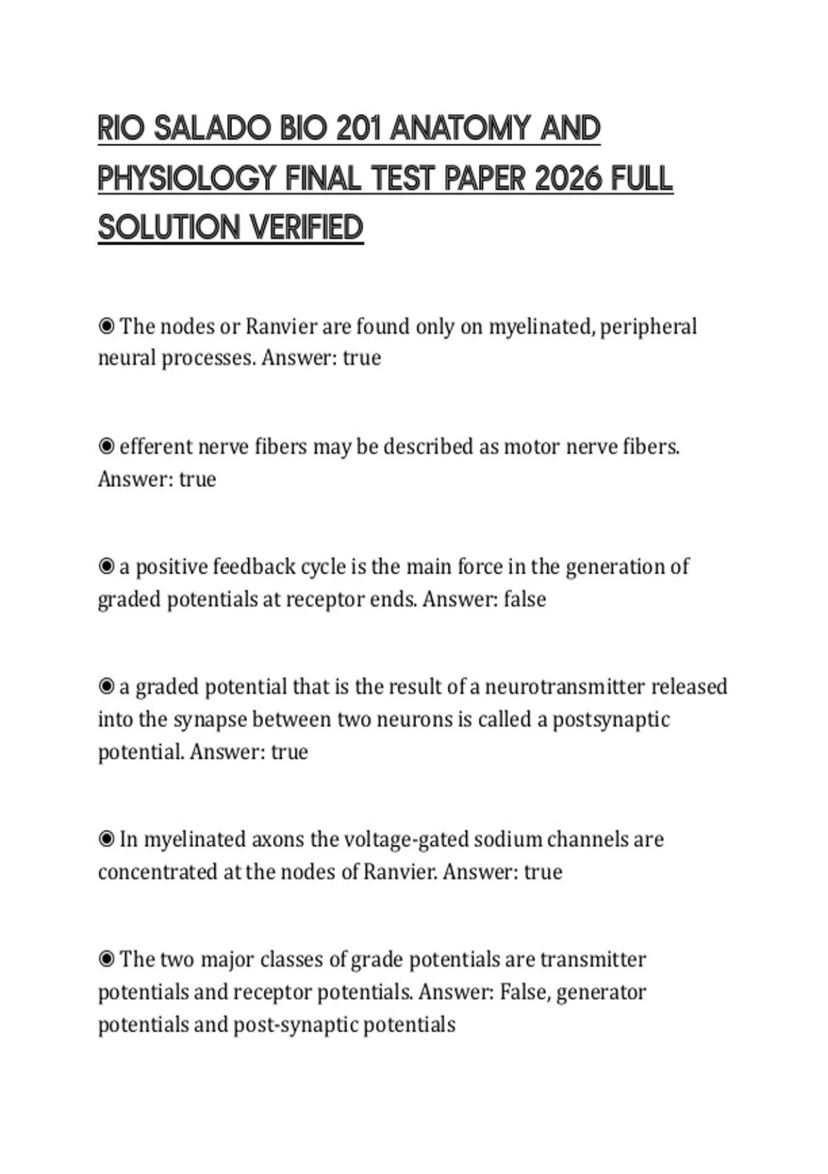 RIO SALADO BIO 201 ANATOMY AND PHYSIOLOGY FINAL TEST PAPER 2026 FULL SOLUTION VERIFIED