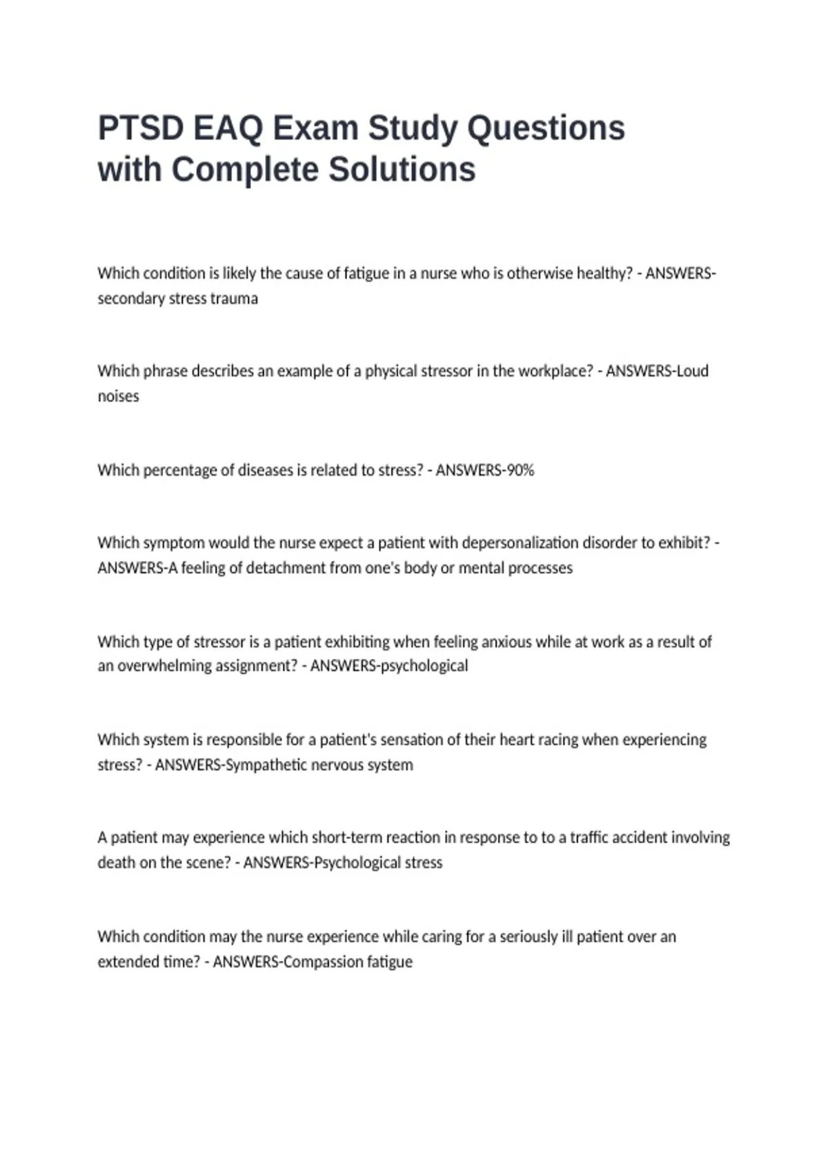 PTSD EAQ Exam Study Questions