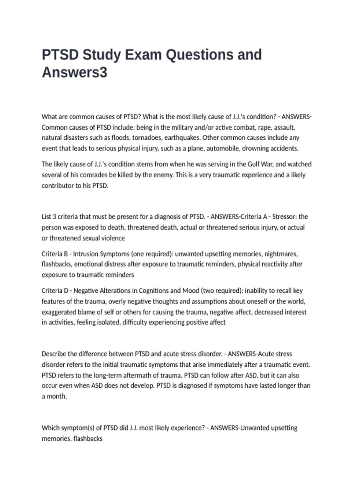 What are common causes of PTSD? What is the most likely cause of J.J.'s condition? - ANSWERS-