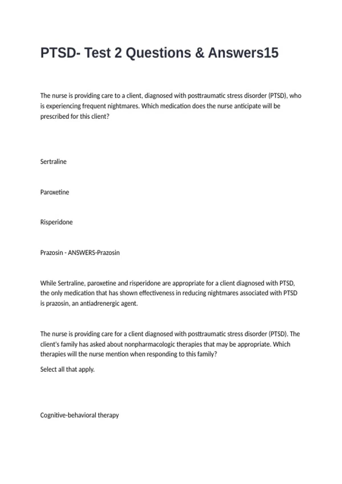 PTSD- Test 2 Questions & Answers15