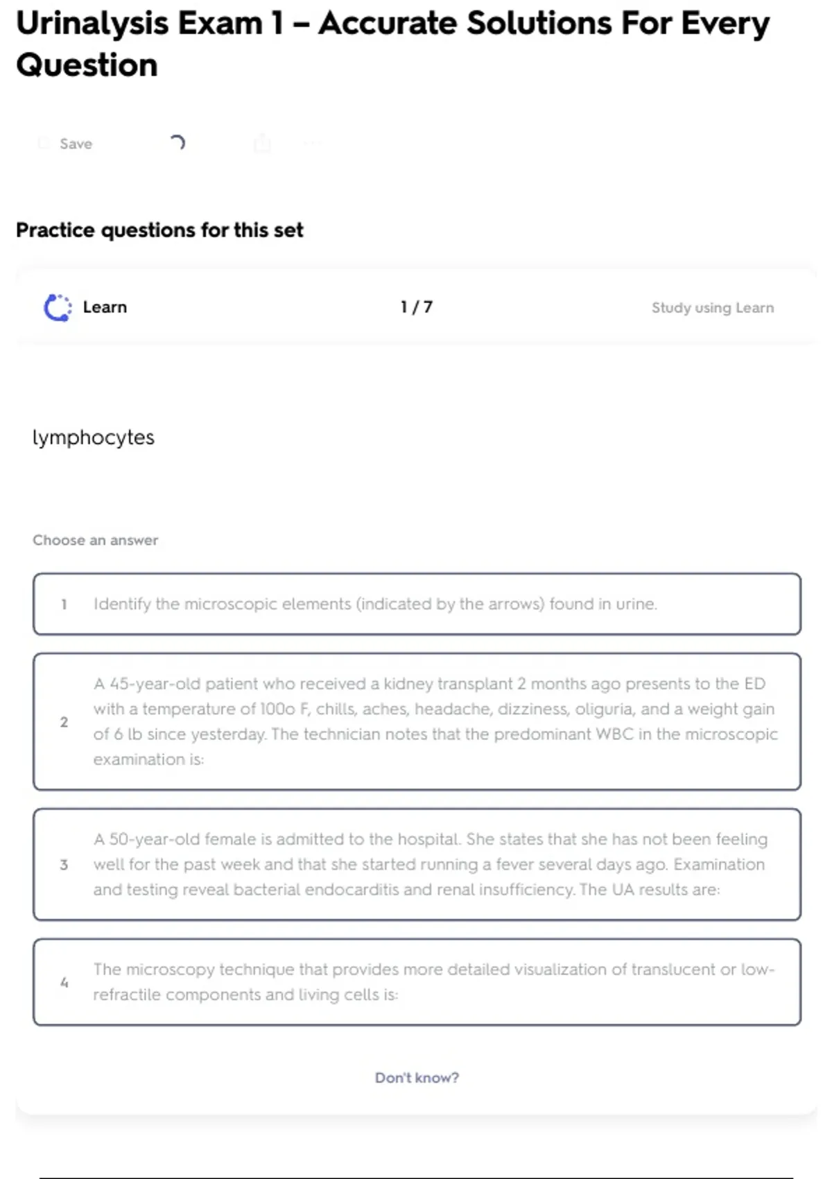 1 Identify the microscopic elements (indicated by the arrows) found in urine.