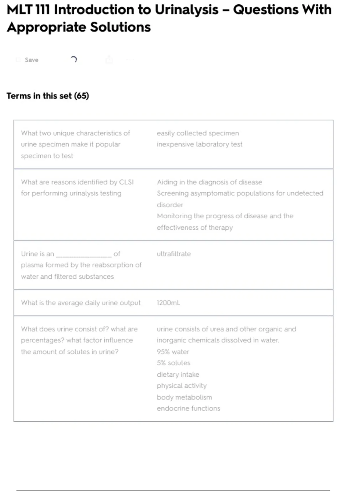 MLT 111 Introduction to Urinalysis – Questions With Appropriate Solutions