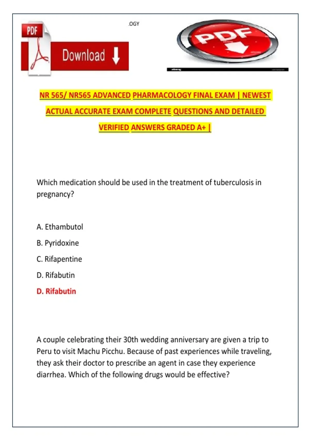 NR 565/ NR565 ADVANCED PHARMACOLOGY FINAL EXAM | NEWEST