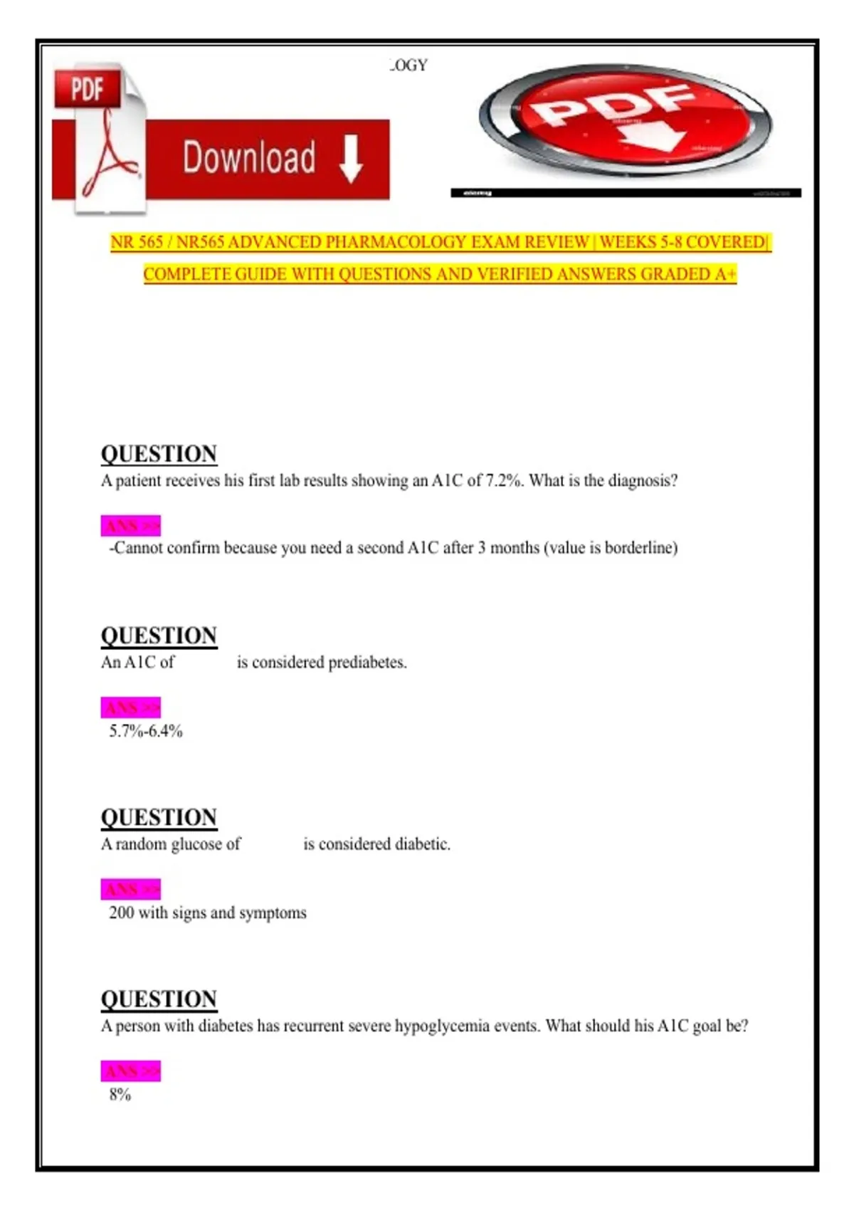 NR 565 / NR565 ADVANCED PHARMACOLOGY EXAM REVIEW | WEEKS 5-8 COVERED| COMPLETE GUIDE WITH QUESTIONS AND VERIFIED ANSWERS GRADED A+ / NR565 ADVANCED PHARMACOLOGY EXAM REVIEW | WEEKS 5-8 COVERED| COMPLETE GUIDE WITH QUESTIONS AND VERIFIED ANSWERS GRADED A+