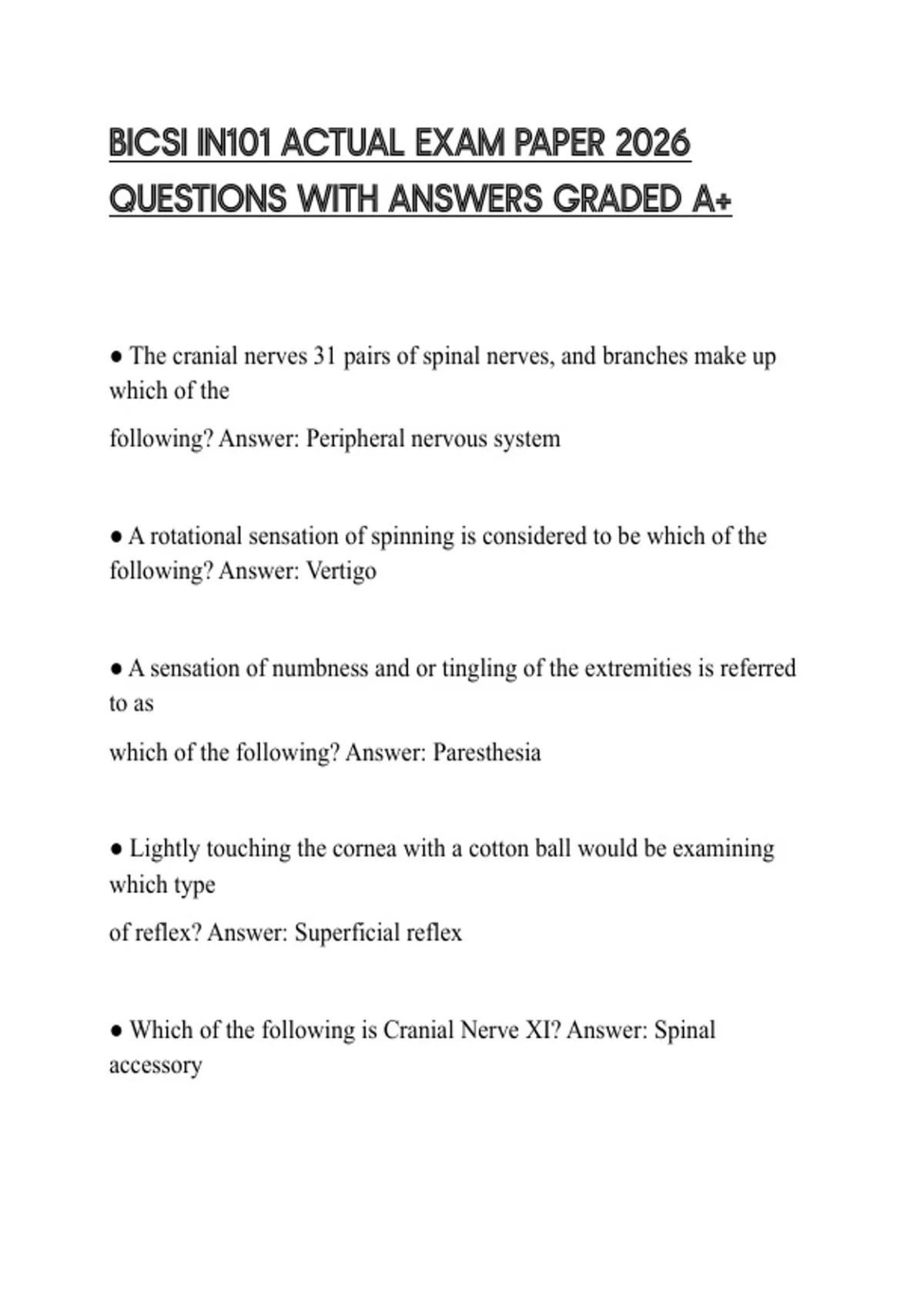 BICSI IN101 ACTUAL EXAM PAPER 2026 QUESTIONS WITH ANSWERS GRADED A+