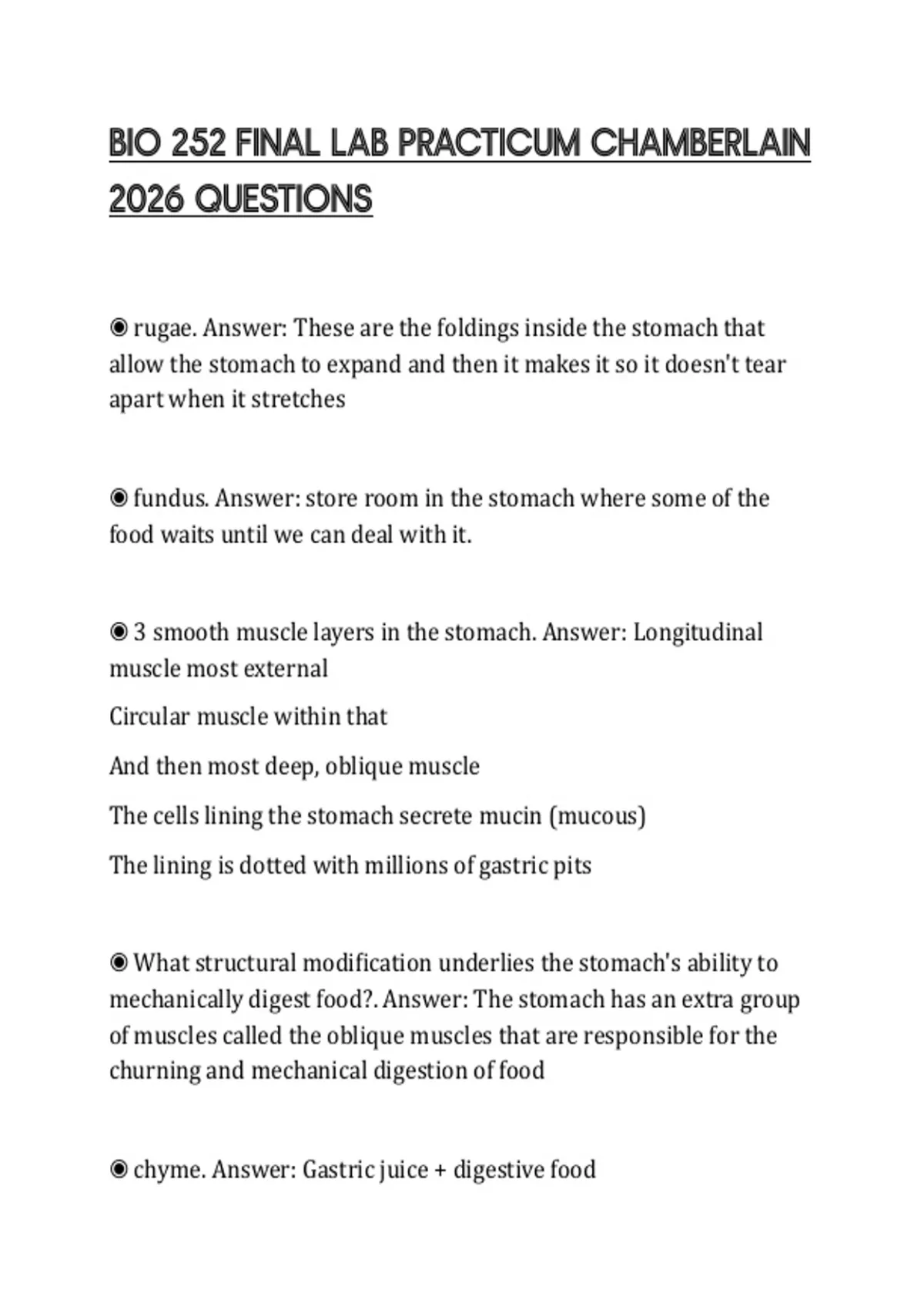 BIO 252 FINAL LAB PRACTICUM CHAMBERLAIN 2026 QUESTIONS