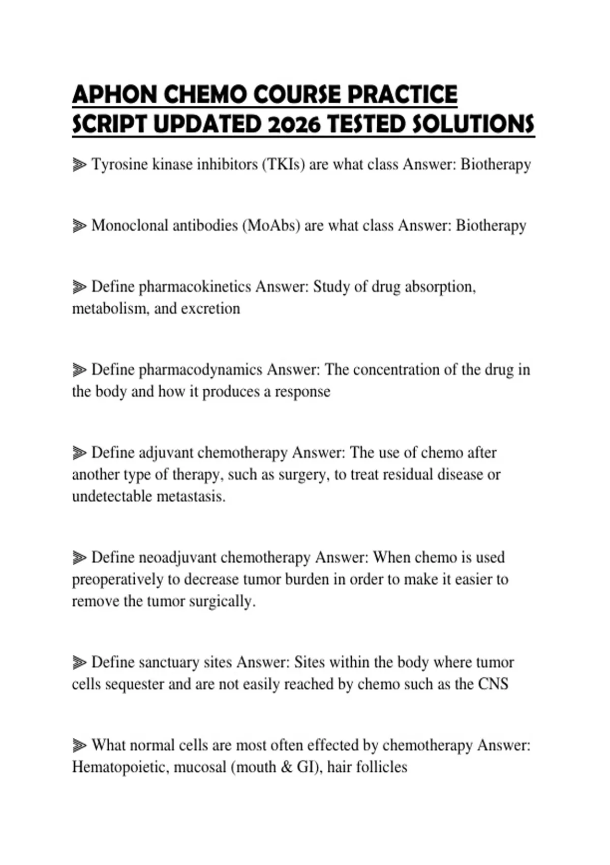 APHON CHEMO COURSE PRACTICE SCRIPT UPDATED 2026 TESTED SOLUTIONS