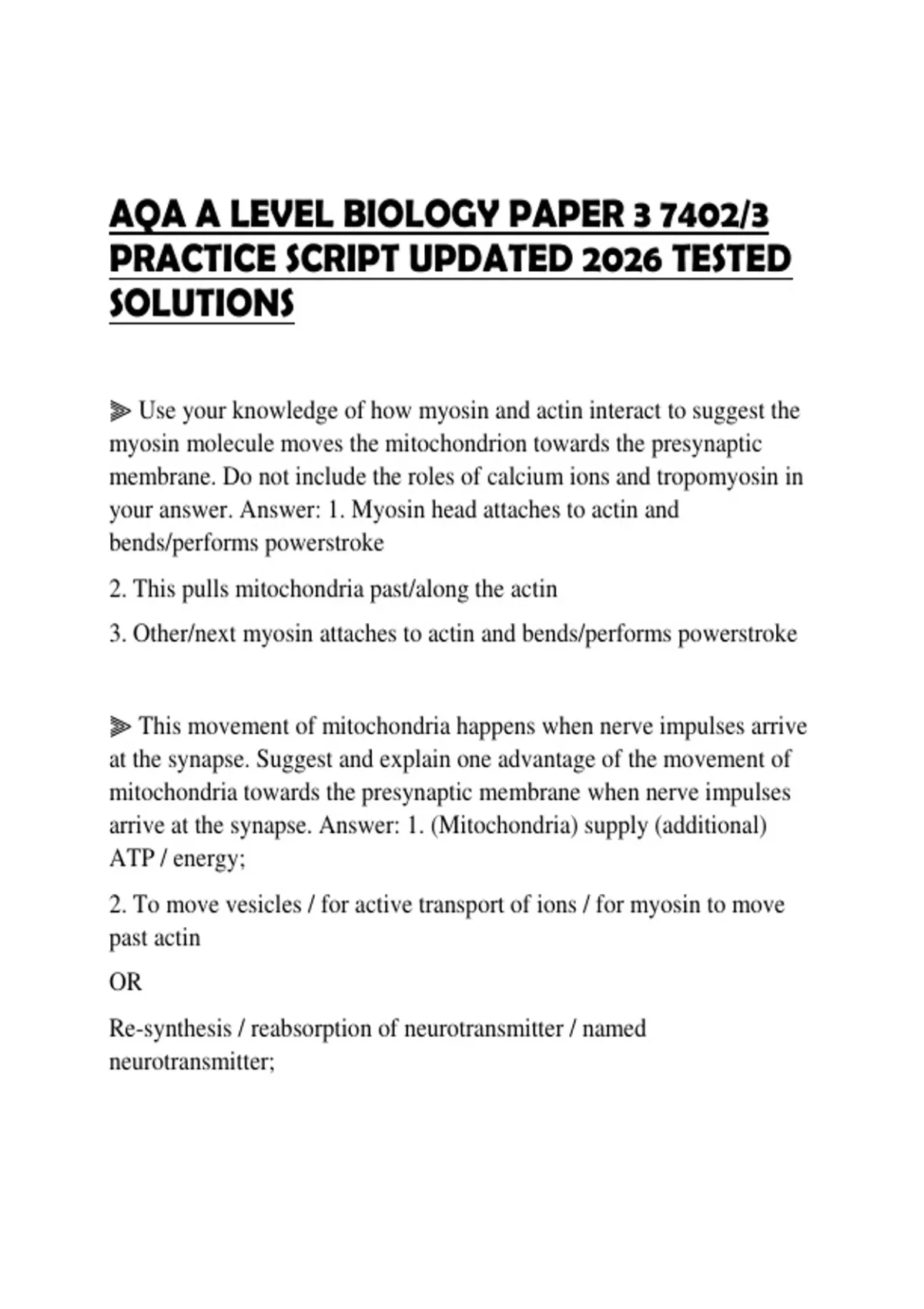 arrive at the synapse. Answer: 1. (Mitochondria) supply (additional)