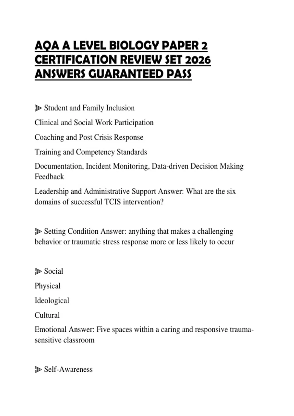 AQA A LEVEL BIOLOGY PAPER 2 CERTIFICATION REVIEW SET 2026 ANSWERS GUARANTEED PASS
