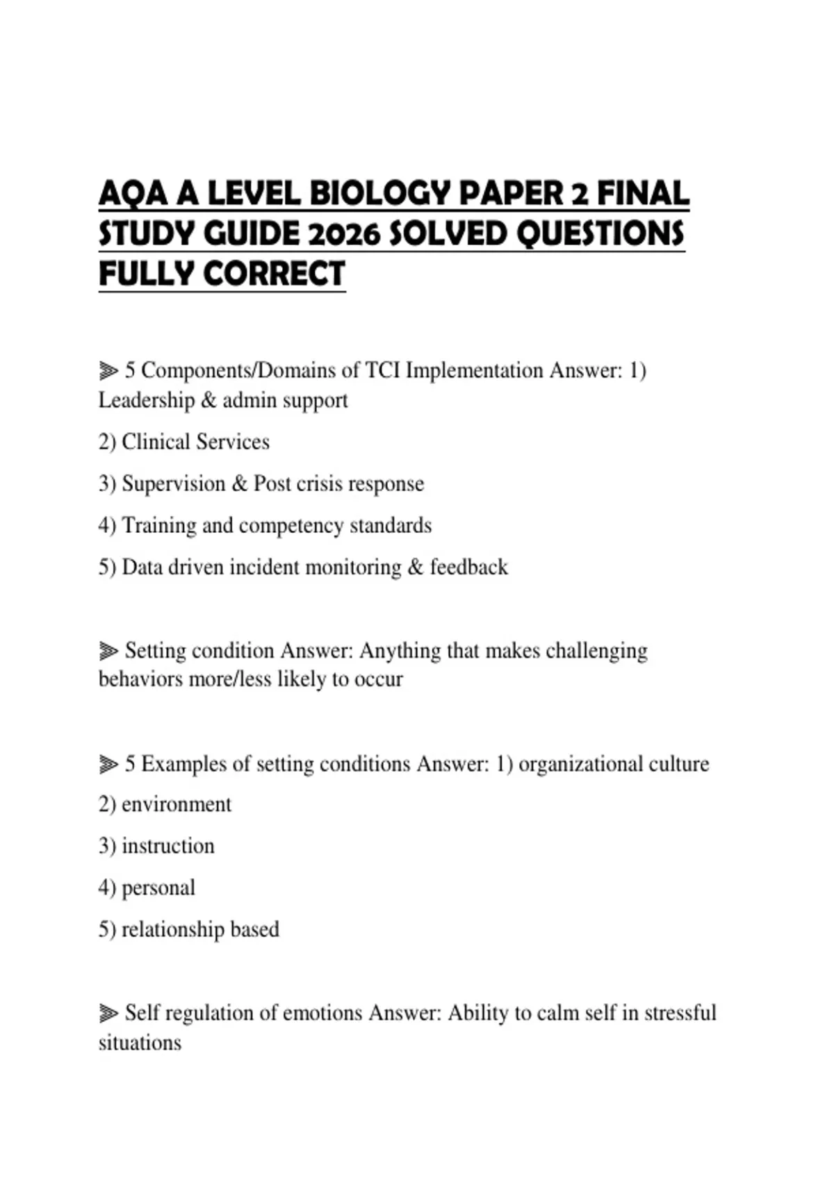 AQA A LEVEL BIOLOGY PAPER 2 FINAL STUDY GUIDE 2026 SOLVED QUESTIONS FULLY CORRECT