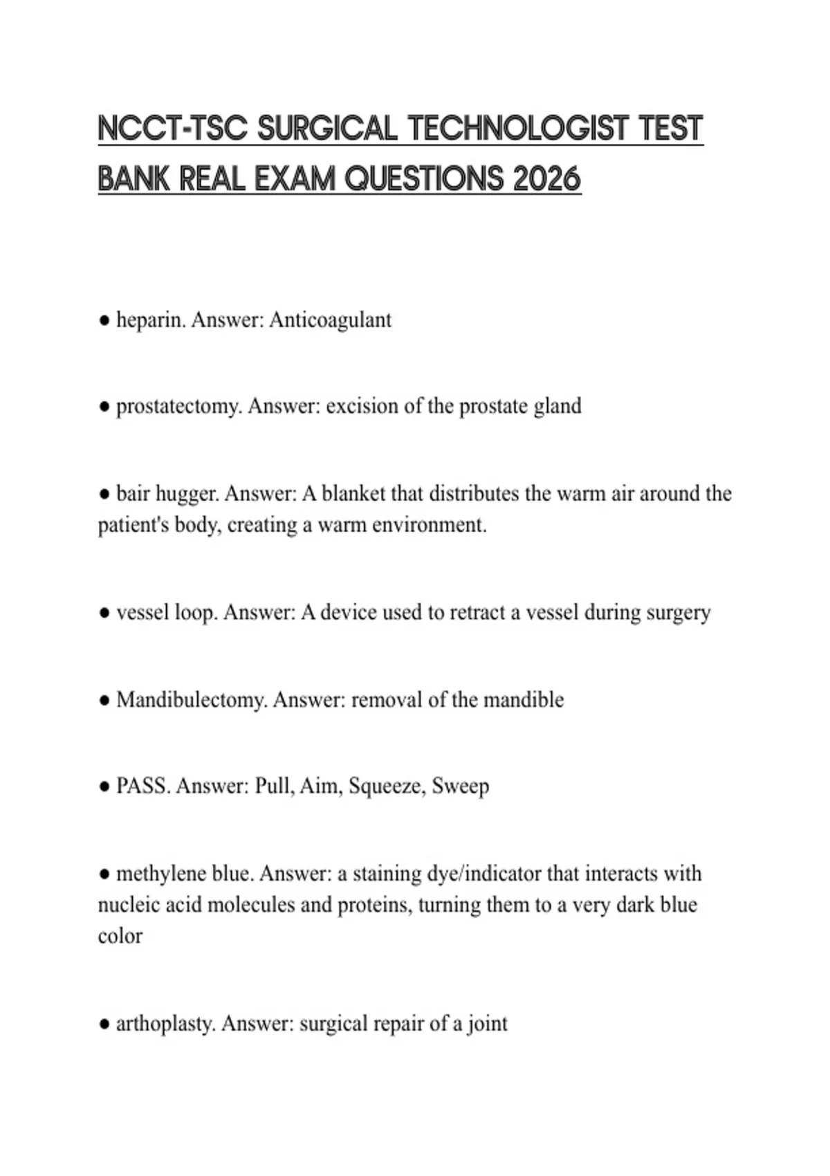 ● arthoplasty. Answer: surgical repair of a joint