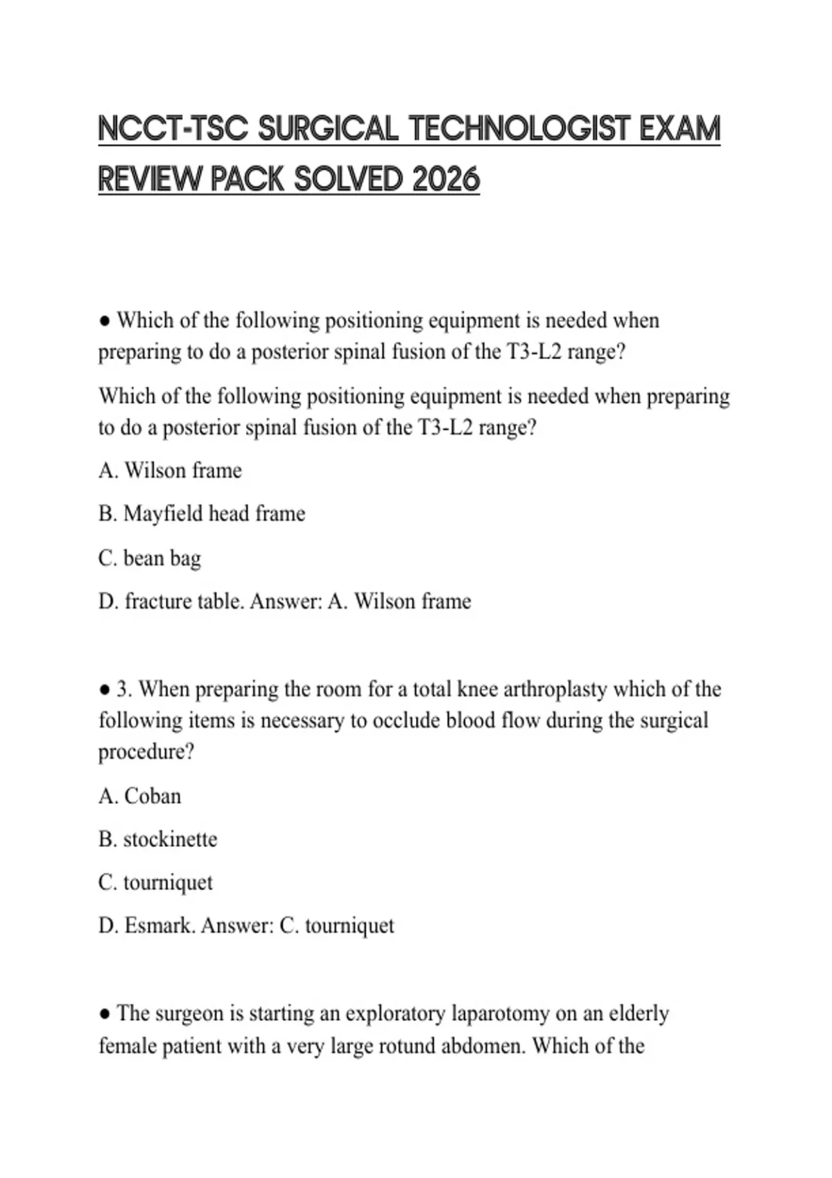 NCCT-TSC SURGICAL TECHNOLOGIST EXAM REVIEW PACK SOLVED 2026