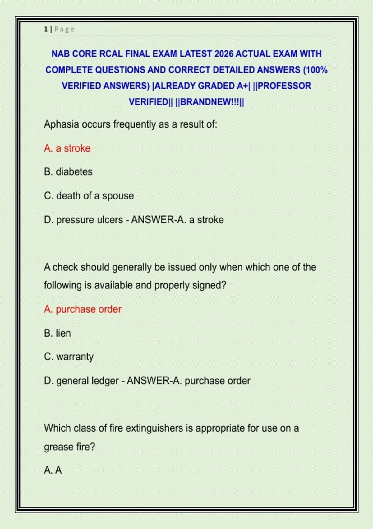 NAB CORE RCAL FINAL EXAM LATEST 2026 ACTUAL EXAM WITH