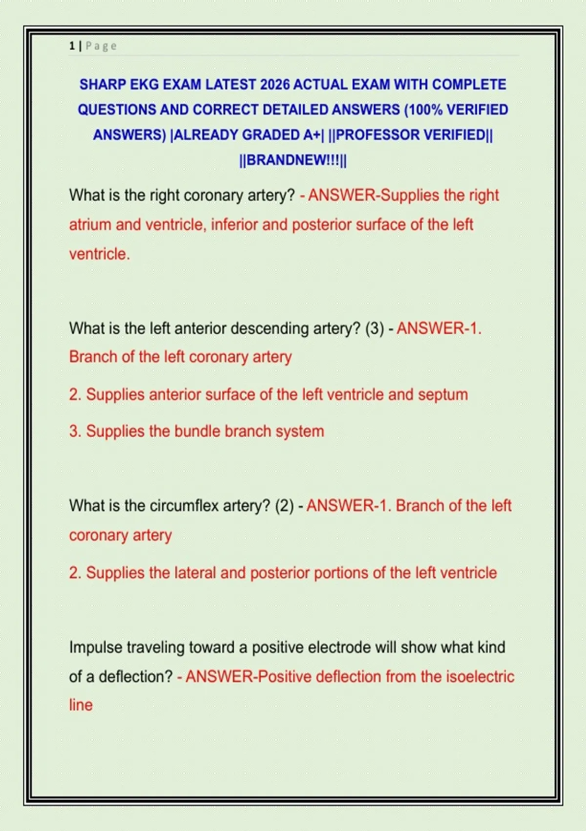 SHARP EKG EXAM LATEST 2026 ACTUAL EXAM WITH COMPLETE