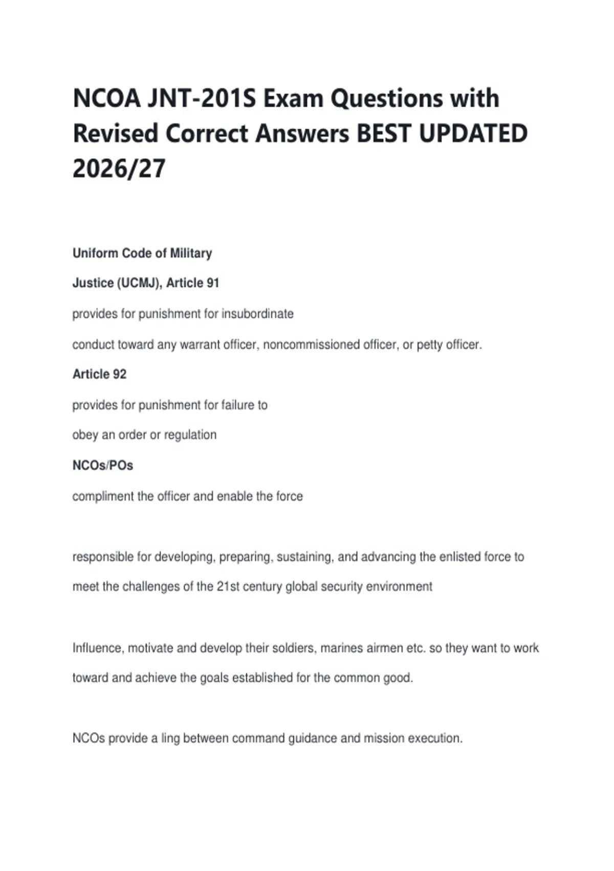 NCOA JNT-201S Exam Questions with