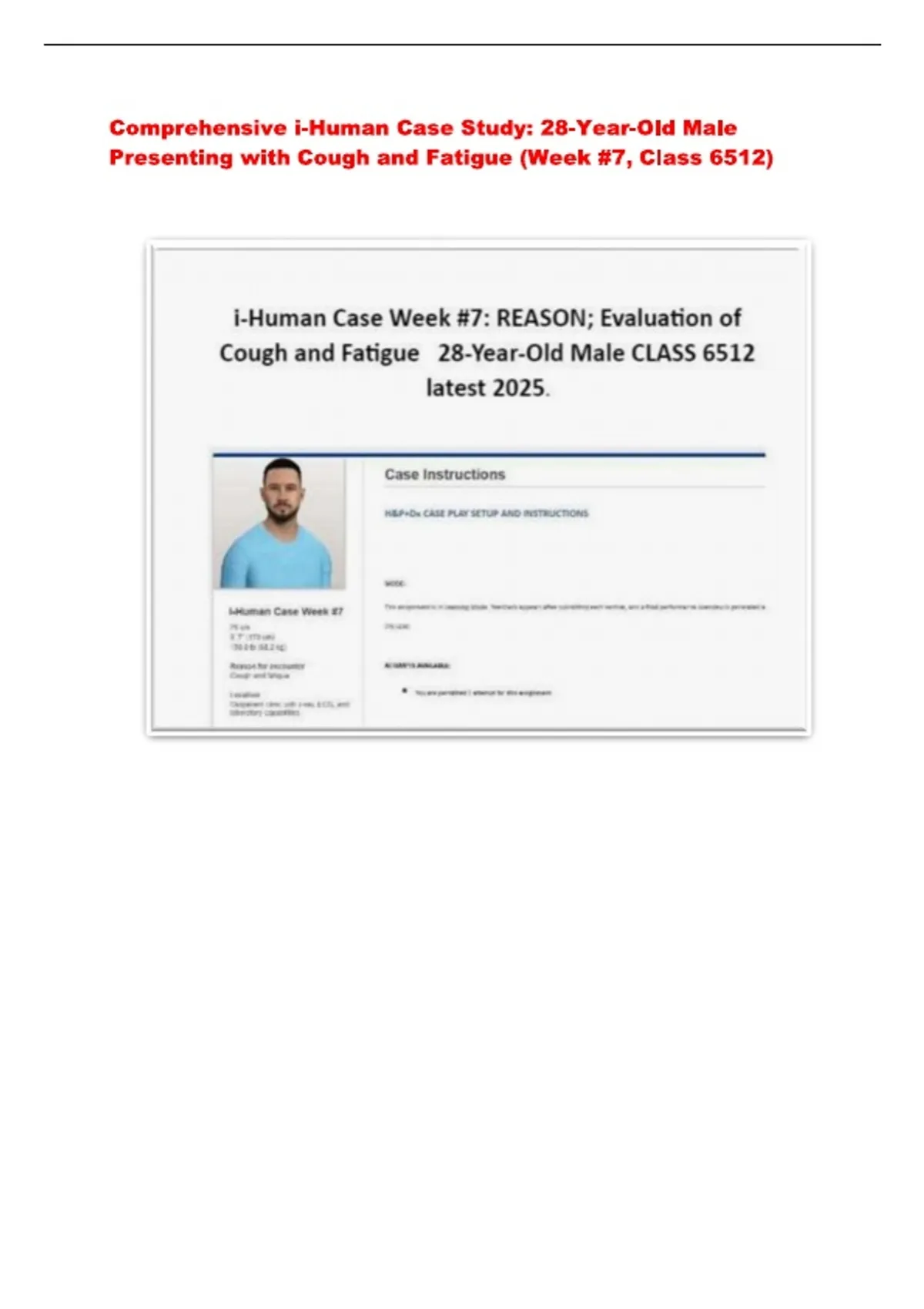 Comprehensive i-Human Case Study: 28-Year-Old Male with Cough and Fatigue (Week 7 – Class 6512) | Questions & Correct Answers