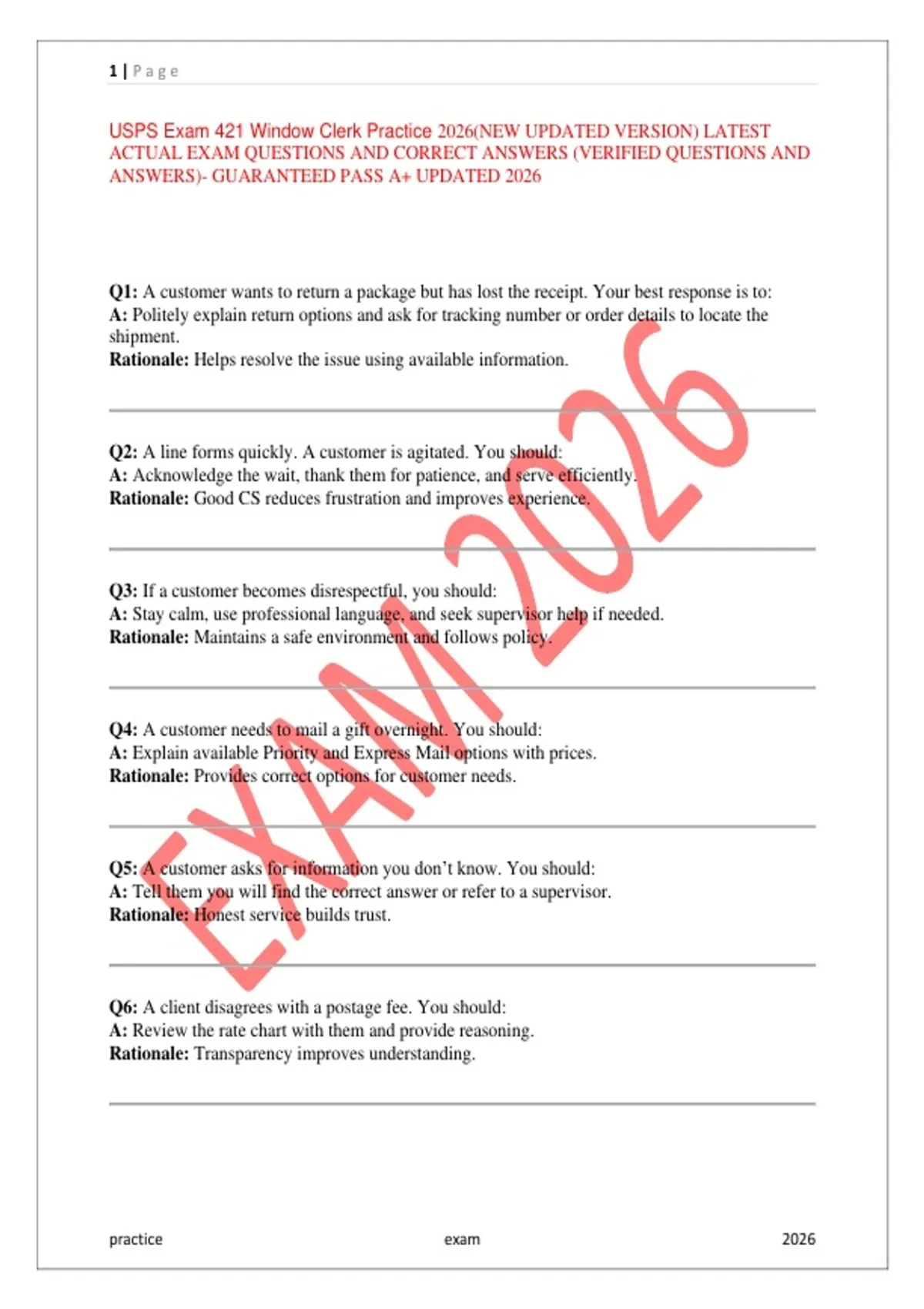 USPS Exam 421 Window Clerk Practice 2026(NEW UPDATED VERSION) LATEST