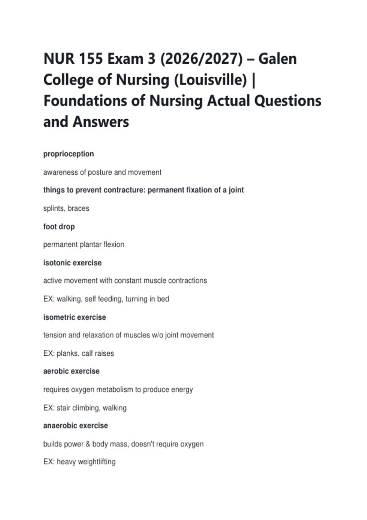 NUR 155 Exam 3 (2026/2027) – Galen