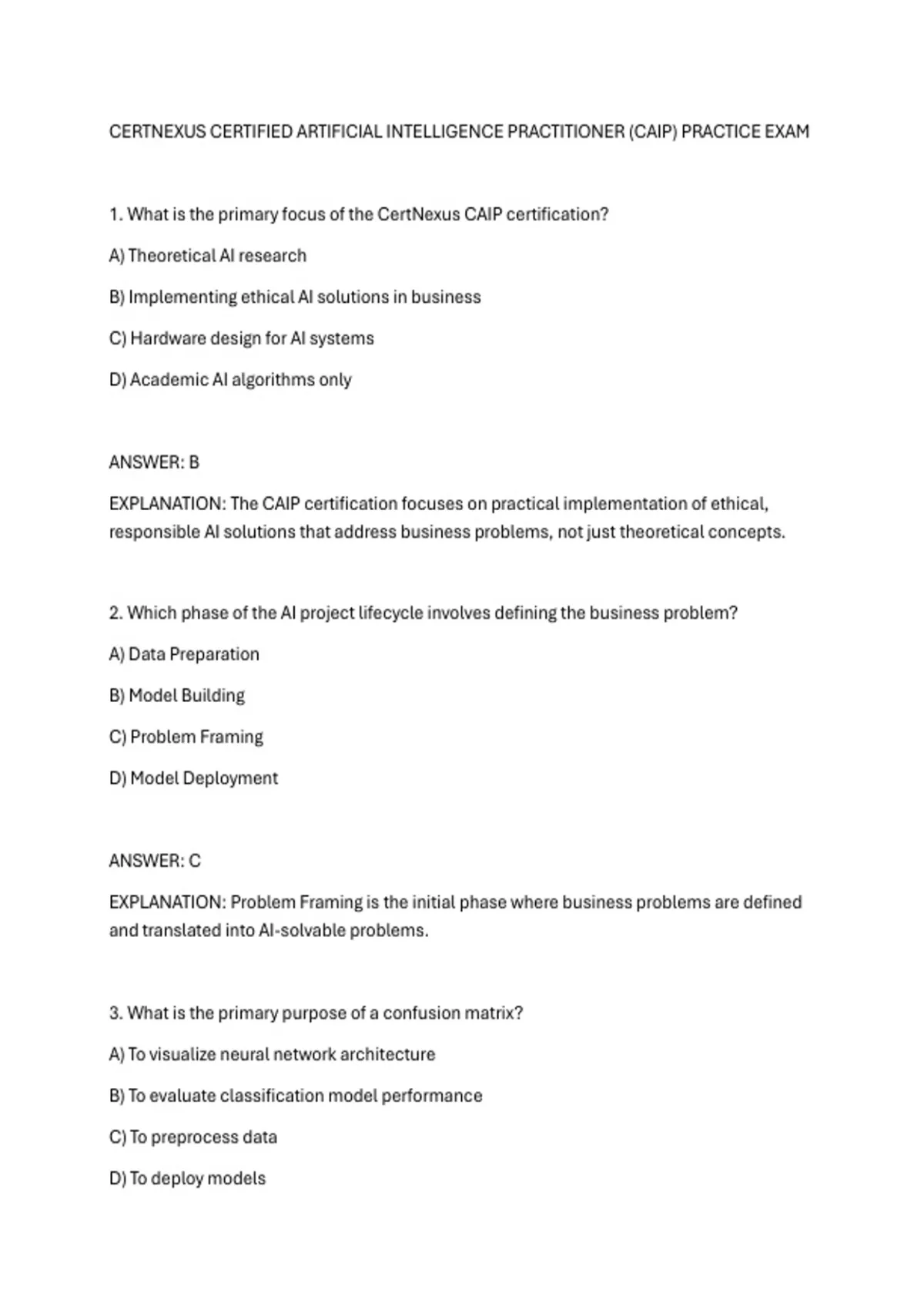 CERTNEXUS CERTIFIED ARTIFICIAL INTELLIGENCE PRACTITIONER (CAIP) PRACTICE EXAM
