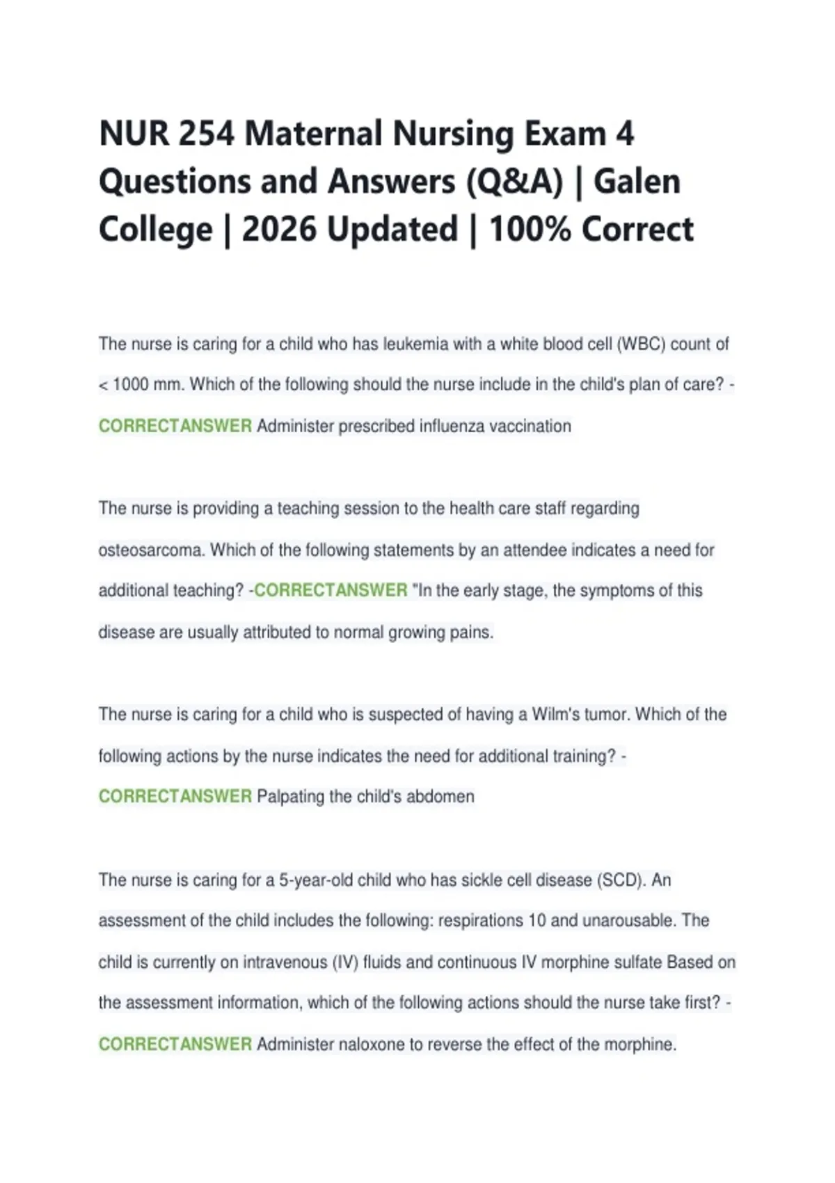 NUR 254 Maternal Nursing Exam 4