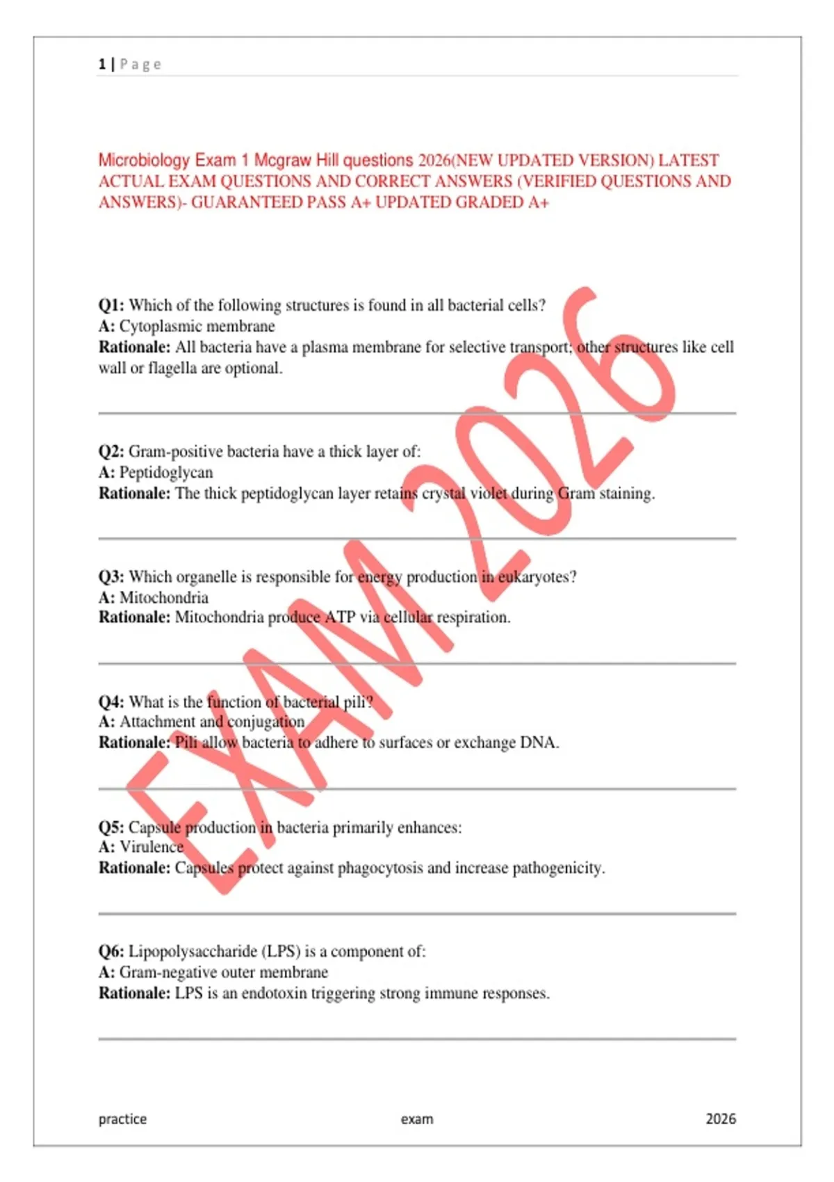 Microbiology Exam 1 Mcgraw Hill questions 2026(NEW UPDATED VERSION) LATEST