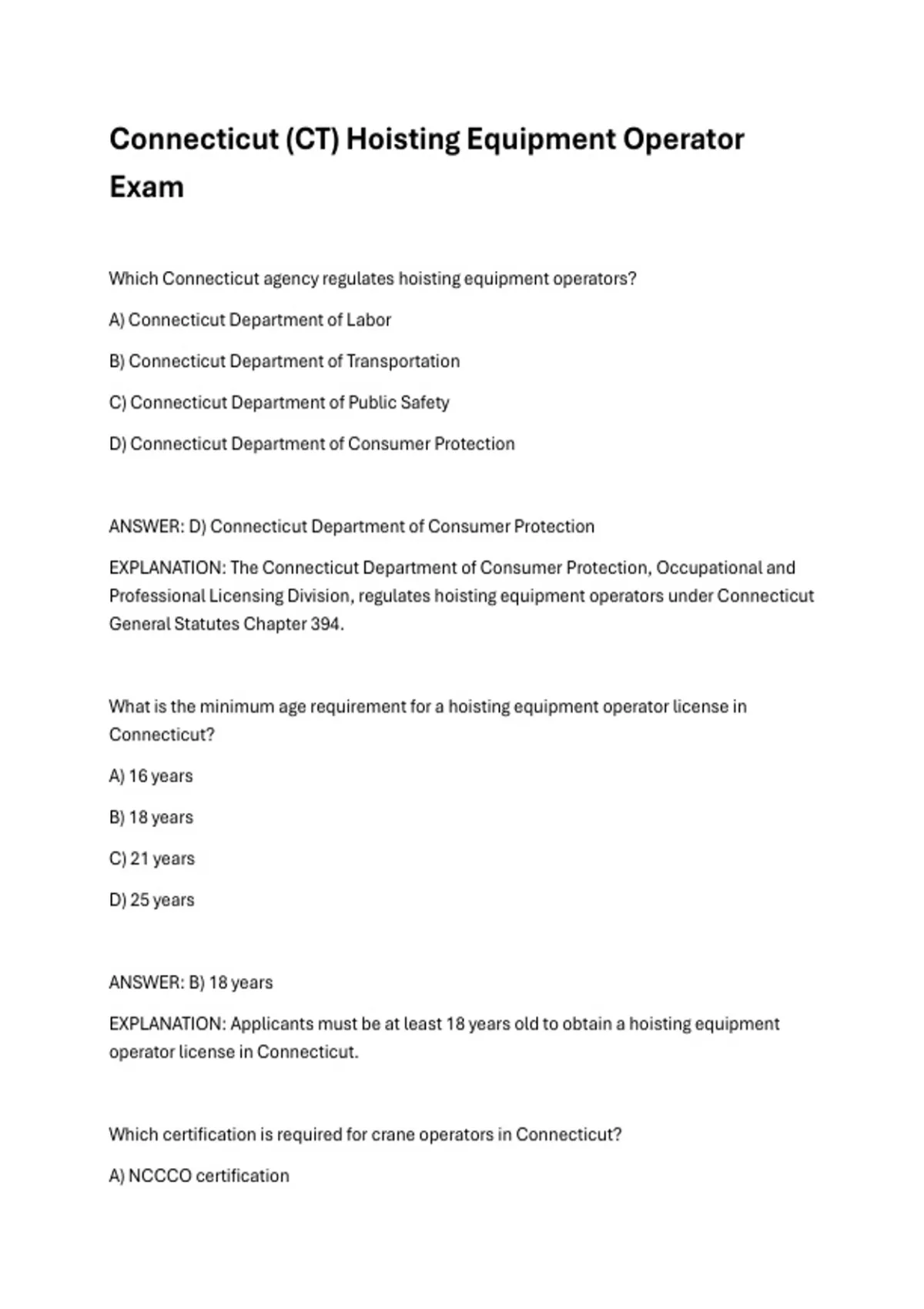 EXPLANATION: Connecticut requires NCCCO (National Commission for the Certification of